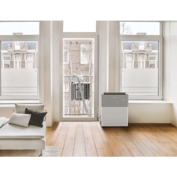 MIDEA PortaSplit mit einer Kühlleistung von 3,5 kW ist für mittelgroße bis große Räume konzipiert, in denen herkömmliche mobile Klimaanlagen oft nicht ausreichen. Er bietet eine hohe saisonale Energieeffizienz (A++ im Kühl- und A+ im Heizbetrieb) und komfortable Kühlung ohne Zugluft. Dank intelligenter Luftführung wird die Temperatur gleichmäßig im Raum verteilt – ohne kalte Zonen und unangenehmen Luftzug.