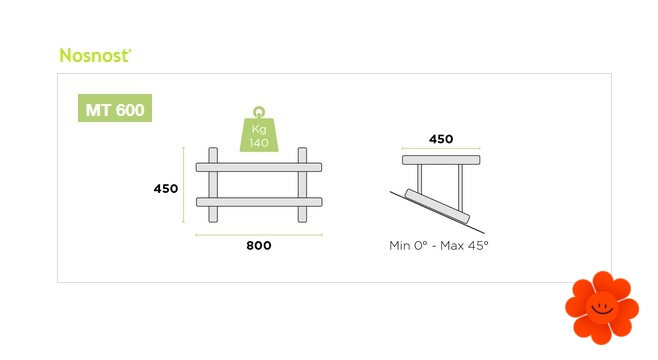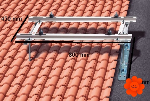 Abmessungen der Konsole: 800 x 450 mm, Schenkellänge: 450 mm, Tragkraft 140 kg, Dachneigung 0° - 45°.