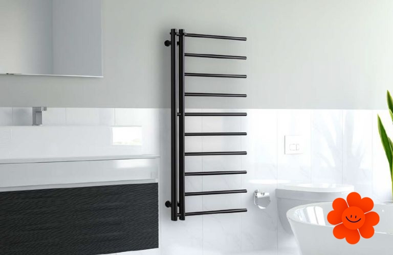 Designheizkörper Apollo vereint Funktionalität mit Eleganz. Dank der praktischen Lösung ermöglicht er das Aufhängen von Handtüchern entweder seitlich oder an den integrierten Haken, die an den vertikalen Rohren angebracht sind. Für eine bessere Anpassung an den Raum ist er auch in der linken Ausführung erhältlich.