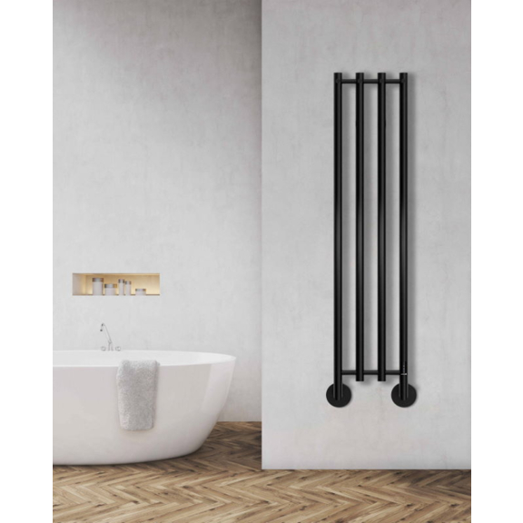 Der effektive elektrische Trockner für Badetücher P.M.H. Bosse mit einem niedrigen Stromverbrauch ist in den Ausführungen geglänzt rostfrei und schwarz matt im Angebot.