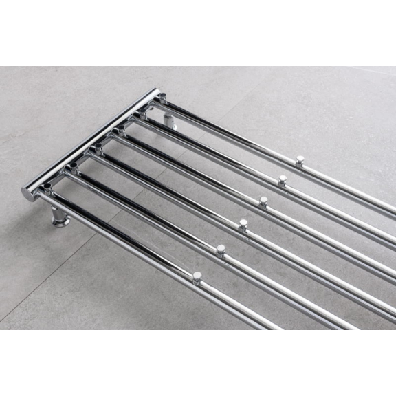 Der Chrom-Heizkörper P.M.H. Coral bietet ein modernes Design in der Verbindung der horizontalen und vertikalen Rohre. Zum Vorteil sind die praktischen Haken zum Hängen von Badetüchern und eines Morgenrocks.