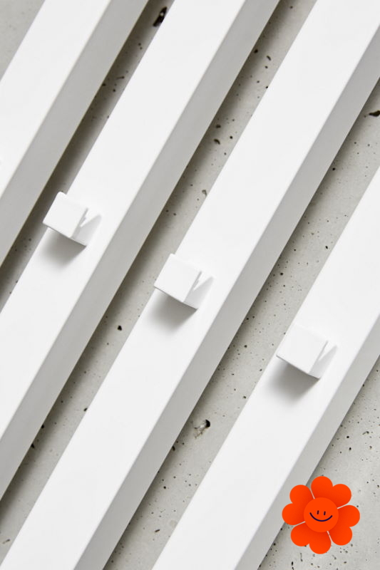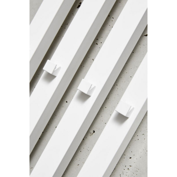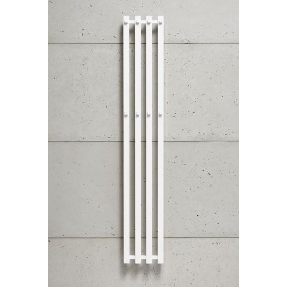 Der Heizkörper ist mit eckigen Haken in zwei Reihen zum einfachen Hängen von Badetüchern ausgerüstet.