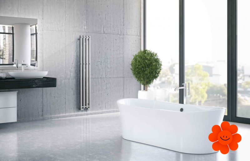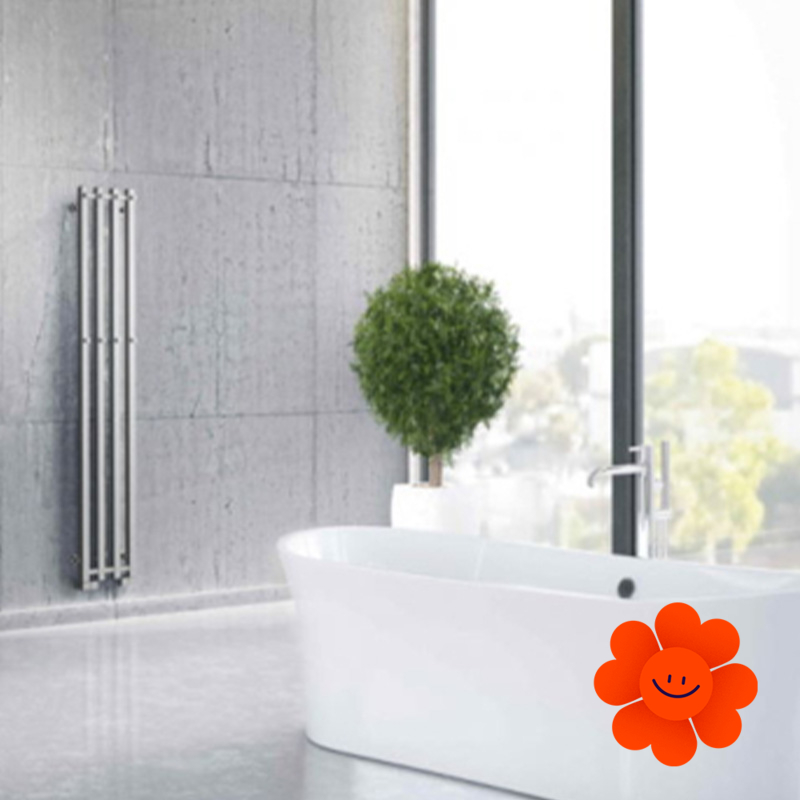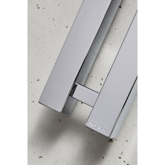 P.M.H. Pluto X ist ein Chrom-Heizkörper mit eckigen Rohrprofilen, der zu den schmalsten Heizkörpern am Markt gehört.