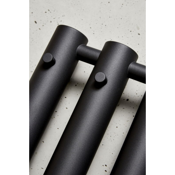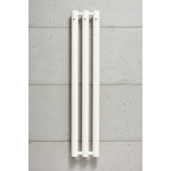 Der ungewöhnliche, raumsparende, elegante Heizkörper P.M.H. Rosendal Massive ist die massive Ausführung des Heizkörpers Rosendal mit Haken für einfaches Hängen von Badetüchern.