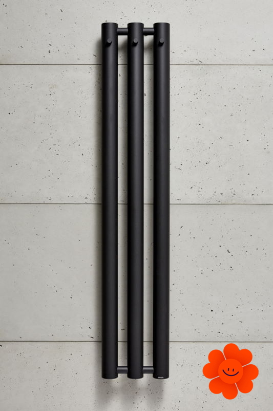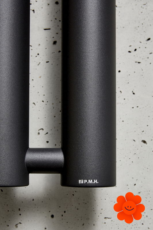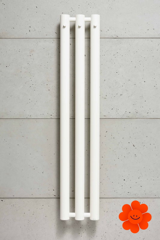 Der ungewöhnliche, raumsparende, elegante Heizkörper P.M.H. Rosendal Massive ist die massive Ausführung des Heizkörpers Rosendal mit Haken für einfaches Hängen von Badetüchern.