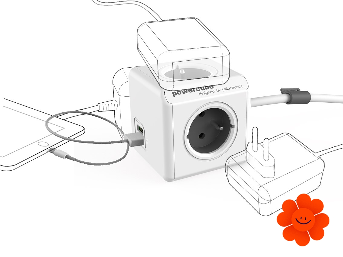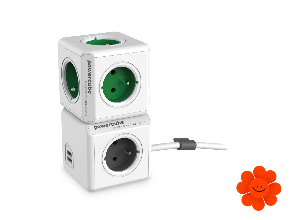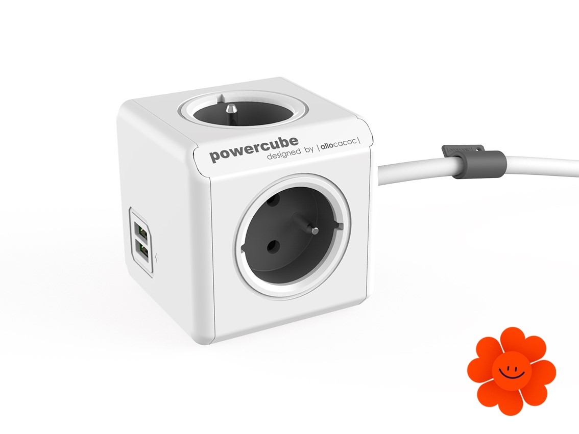 Sie können gleichzeitig einfach bis 4 Elektrogeräte anschließen und dank 2 USB-Anschlüssen können Sie auch Ihre Mobilgeräte aufladen (Tablet, Handy, usw.). Sie ermöglicht schnelle Ladung. Sie können die USB Version allein gerade in die Steckdose anschließen oder es ist möglich, sie mit anderen PowerCube Versionen zu kombinieren.