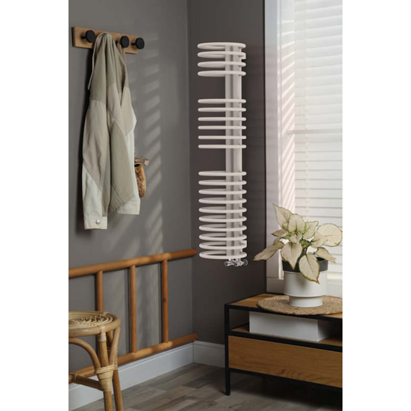 Durch geschickte Abstände zwischen den runden Elementen können Sie Handtücher bequem direkt in der Mitte des Heizkörpers aufhängen, was Sie besonders im Badezimmer oder Flur zu schätzen wissen.
