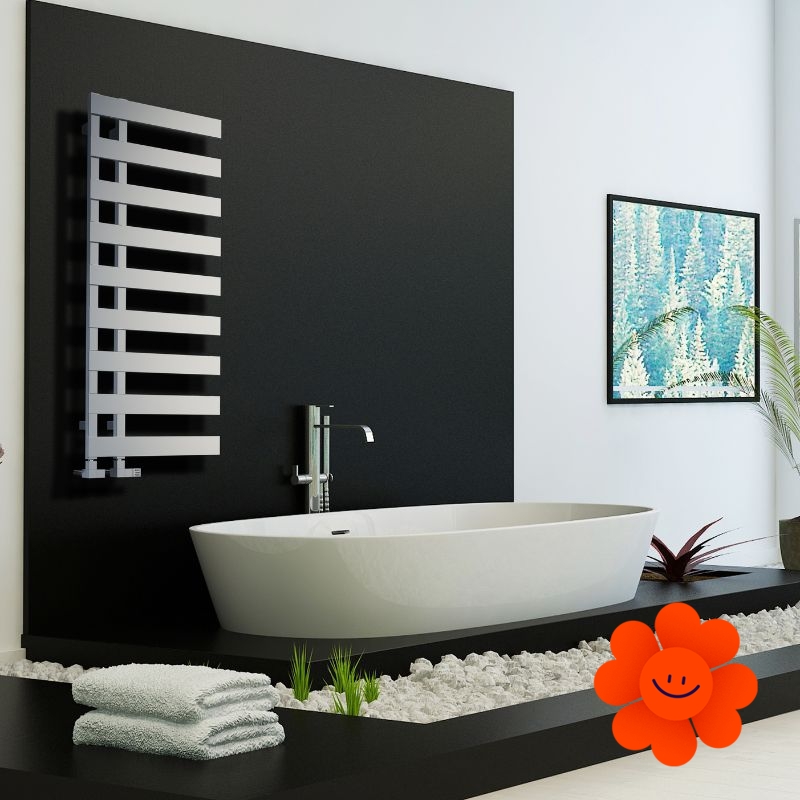 Der Heizkörper kann je nach Wunsch und Raumaufteilung links oder rechts montiert werden. Dank seines schmalen Profils eignet er sich ideal für Badezimmer, Küchen oder Flure.