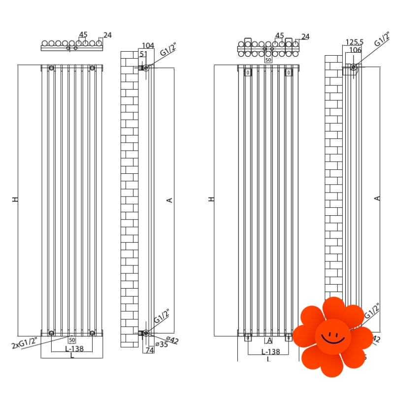 RADOX Hendra (bi) Design-Wasserheizkörper zweireihig