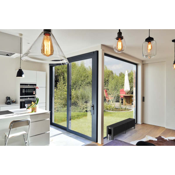 Der Design-Wasserheizkörper RADOX Piglet mit Bodenmontage ist eine ideale Lösung für niedrige Fensterbänke oder große Glasflächen. Dank seiner geringen Höhe, aber beeindruckenden Breite und Tiefe kann er auch größere Räume effizient beheizen, ohne die Aussicht zu beeinträchtigen oder die Innenarchitektur zu stören.