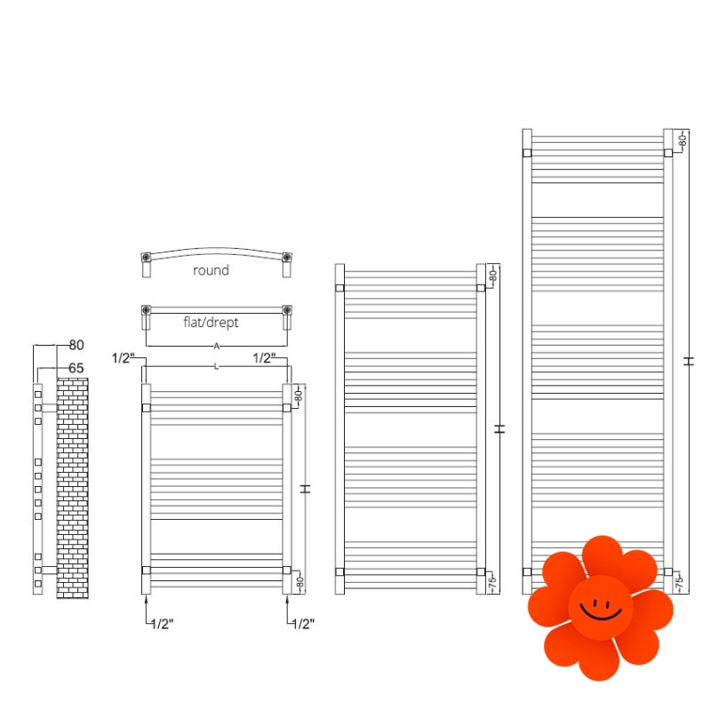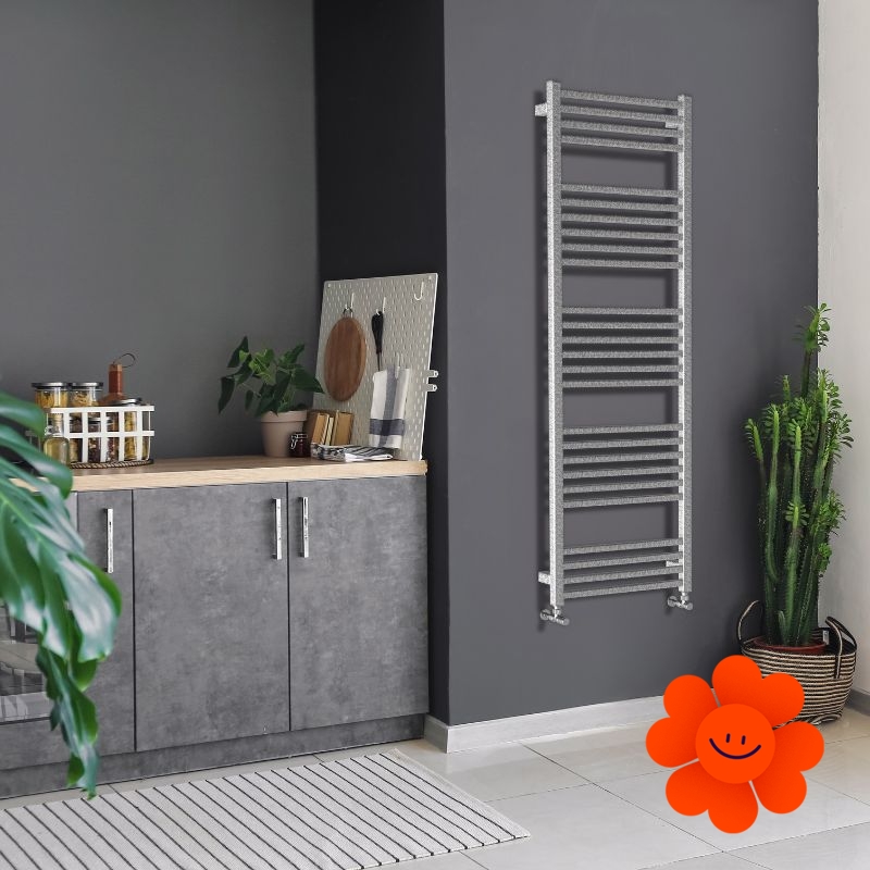 Die waagerechten Lamellen aus Vierkant-Stahlprofilen sind in gleichmäßigen Abständen angeordnet und bieten ausreichend Platz zum bequemen Aufhängen von Handtüchern und sorgen gleichzeitig für eine gleichmäßige Wärmeverteilung.