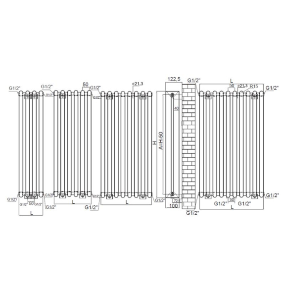 Anschlusstyp: V – der Heizkörper ist mit einem unteren rechten oder linken Anschluss im Abstand von 50 mm ausgestattet, was eine ästhetischere Installation, eine bessere Temperaturregulierung ermöglicht und ideal für moderne Heizsysteme, auch Niedertemperatursysteme, ist.