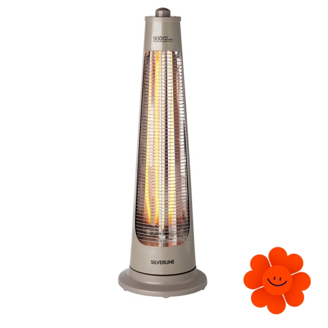 Silverline verfügt über zwei Leistungsstufen 450 / 900 W, Drehbewegung und kann die Fläche mindestens von 10 m² erwärmen. Er wird gerade in das Stromnetz angeschlossen und verfügt über die Funktion der automatischen Abschaltung im Falle des Umkippens.