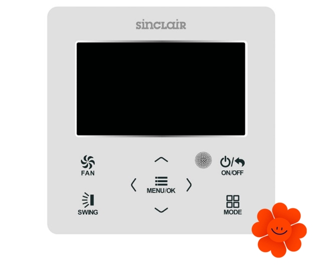 Diese wählbare Kabelfernbedienung kann mit einem Kommunikationskabel direkt an die Innenklimaeinheit Sinclair angeschlossen werden. Mittels dieser Fernbedienung können Wochen- oder Tages-Timer sowie ein Programm für zwei Wochen eingestellt und einzelne Funktionen oder Tasten gesperrt werden.