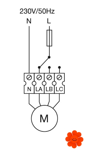Der Asynchronmotor ist dreigängig mit dem Anlaufkondensator. Er verfügt über Wärmeschutz gegen die Überhitzung und Doppelisolation. Die Umdrehungsregelung wird durch den stufenlosen Regler REB oder Umschalter der Umdrehungen INTER 4P realisiert.