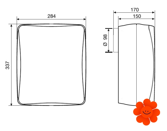 Die Aufputz- und auch Unterputz-Montage sollte auf solche Weise ausgeübt wird, dass das Frontgitter des Ventilators wegen der Bedienung und Wartung demontieret werden kann. Die Packung enthält Dübel und Schrauben. Für die Minderung der Geräuschübertragung durch die Baukonstruktion ist es empfohlen, elastische Unterlagen unter die Befestigungspunkte zu legen.