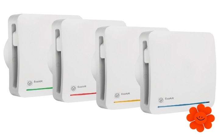 EcoAIR HLC Ecowatt ist ein Modell des kleinen Radialventilators mit der Einstellungsmöglichkeit von Dauer-, ununterbrochenem Betrieb auf eingestellten Umdrehungen oder unterbrochenem Betrieb, wenn sich der Ventilator nach der Anwendung vom Zugschalter, eventuell von externem Schalter usw. einschaltet. Dieses Gerät verfügt über den internen Feuchtigkeitssensor und dazu kann es auch die Nachlaufzeit für 1, 5, 15 oder 30 Minuten eingestellt werden. Minimale und maximale Umdrehungen werden sich mithilfe von Potentiometern nach der Demontage von Frontgitter des Ventilators eingestellt. Nach dem Druck "boost“ kommt der Ventilator zum Durchfluss von 60 m3/h.