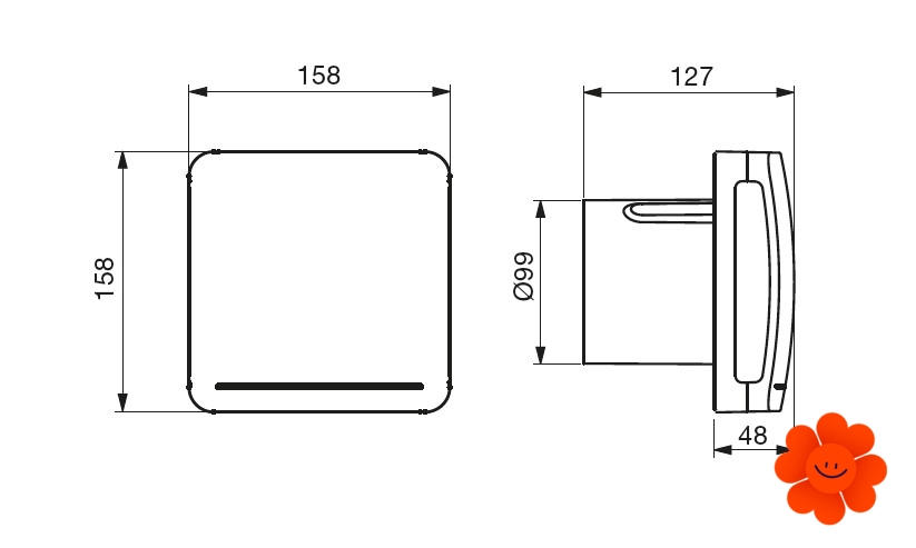 Das Geräusch des Ventilators EcoAIR HLC Ecowatt erreicht maximal 32 dB(A) und während der Höchstleistung ist sein Energievrebrauch nur 5,6 W. Das Ventilatorgehäuse ist aus dem ABS Kunststoff hergestellt und ist für die Wandmontage bestimmt oder an die Decke ohne Beschränkung in horizontaler oder vertikaler Lage. Bestandteil der Packung ist eine Rückluftsperrklappe, die angewendet werden soll, wenn der Ventilator in unterbrochenem Modus läuft.