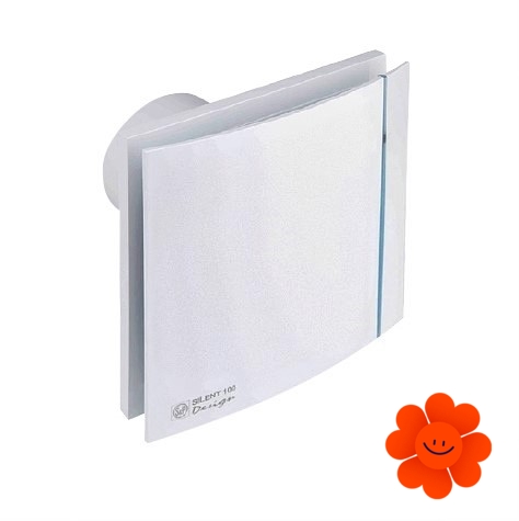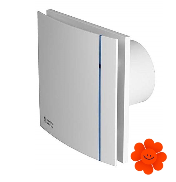 Ventilator Silent 100 Design 12V CZ ist das Grundmodell mit der Rückluftsperrklappe und den Kugellagern. Er hat elegante silberfarbene Ausführung.