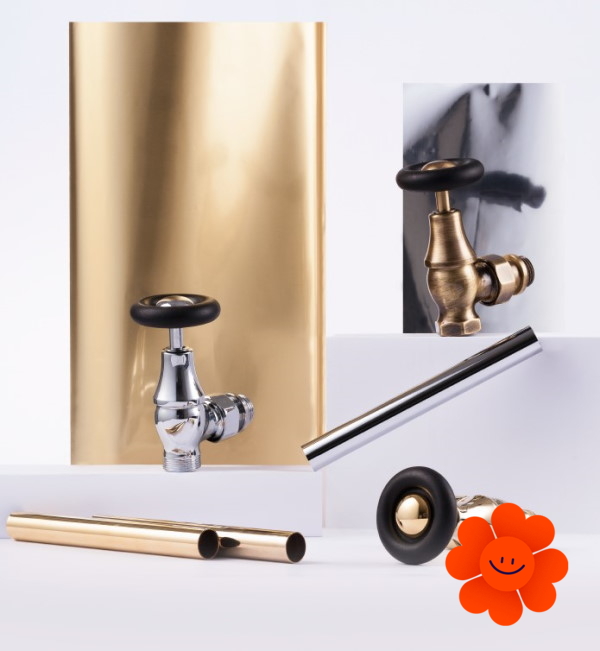 Direktes manuelles Design-Ventilset– Paar 0393+0344 (ein Zuleitungsventil, ein Ableitungsventil und 2x Gewinde).