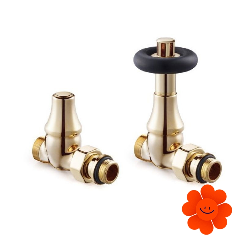 Thermostatisches direktes Designventilset – Paar 0370+0344 (ein Zuleitungsventil, ein Ableitungsventil und 2x Gewinde).