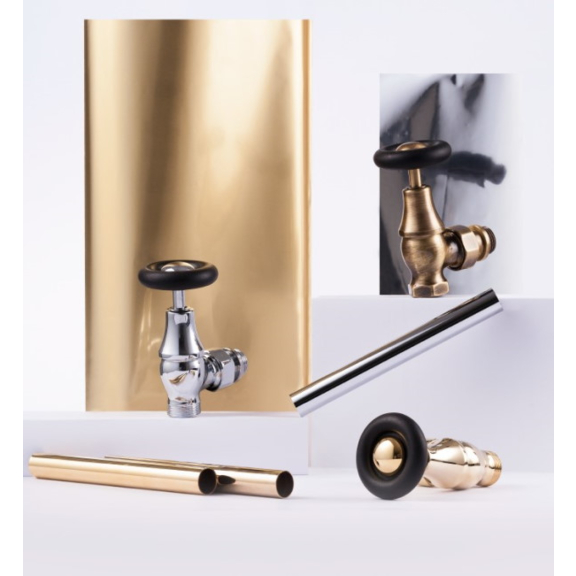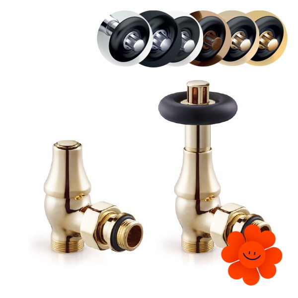 Thermostatisches Design-Eckventilset – Paar 0369+0343 (ein Zuleitungsventil, ein Ableitungsventil und 2x Gewinde).