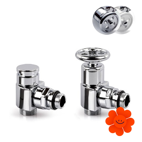 Manuelles Design-Eckventilset mit einer Abänderungsmöglichkeit zum thermostatischen Ventil – Paar 0345+0363 (ein Zuleitungsventil, ein Ableitungsventil und 2x Gewinde).