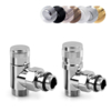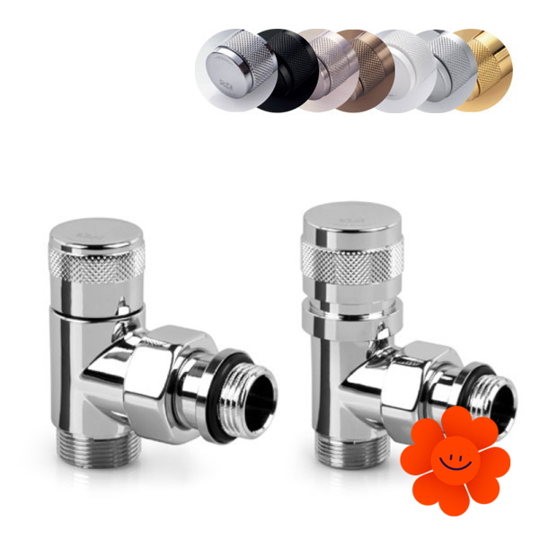 Manuelles Design-Eckventilset mit einer Abänderungsmöglichkeit zum thermostatischen Ventil – Paar 0613+0673 (ein Zuleitungsventil, ein Ableitungsventil und 2x Gewinde).