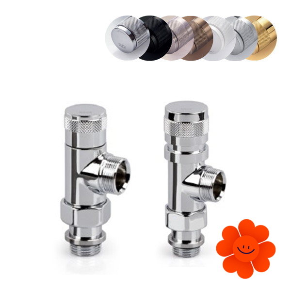 Manuelles Design-Reversierset mit einer Abänderungsmöglichkeit zum thermostatischen Ventil – Paar 614+0674 (ein Zuleitungsventil, ein Ableitungsventil und 2x Gewinde).