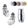 Rechtes thermostatisches Design-Eckventilset – Paar 0478+0678+N093 (ein Zuleitungsventil, ein Ableitungsventil, einen Kopf Domus und 2x Gewinde).