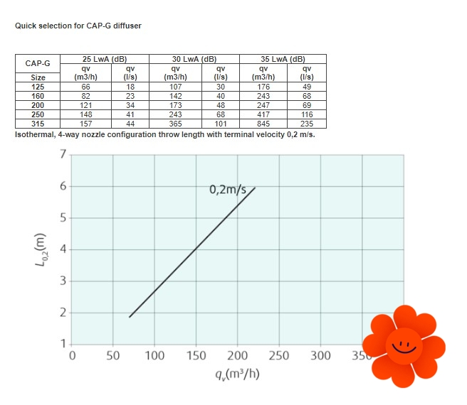 CAP-G besteht aus der ausziehbaren Frontplatte mit den Düsen und aus dem Anschlussteil mit dem Flansch mit der Gummidichtung. Es ist empfohlen, das Ventil an den Anschlusskasten THOR oder gerade an das Rohr (ø125-315) zu montieren. Die Luftleistung bei der kürzeren Reichweite kann so erhöht werden, dass die Frontplatte aus der Grundplatte ein wenig herausgezogen wird. Damit entsteht der Schlitz über den Umfang des Luftauslasses. Es ist möglich, beliebiges Luftverteilungsmuster ohne die Erhöhung vom Geräuschpegel, Druckverlust oder die Änderung des Luftvolumenstroms zu schaffen, weil jede Düse selbstständig unter beliebigen Winkel eingestellt werden kann.