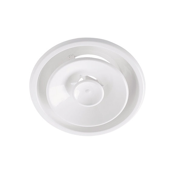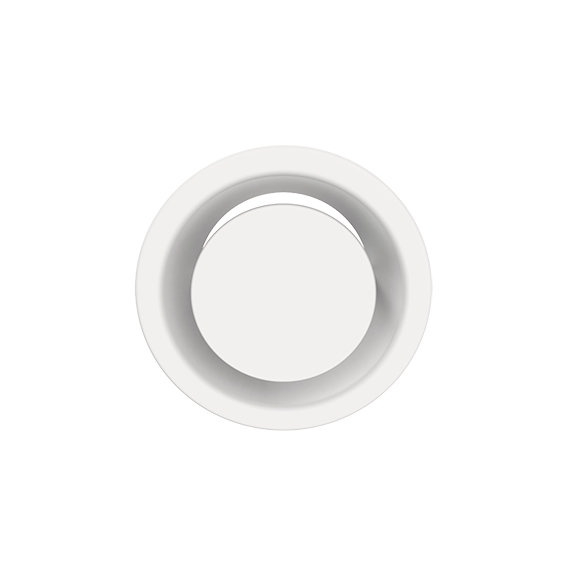 EFF ist ein Abluftventil geeignet für die Decken- oder Wandmontage. Mithilfe der Gegenmutter kann die verstellbare Zentralscheibe befestigt werden, dank welcher der Luftdruck und damit auch der Luftvolumenstrom geregelt werden können.