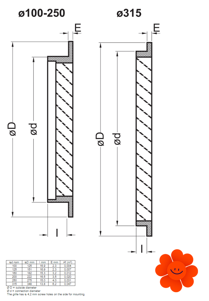 Es ist mit dem Schutznetz aus dem rostfreien Stahl ausgestattet (8x8 mm). Verfügbare Durchmesser ø100-250 mm.