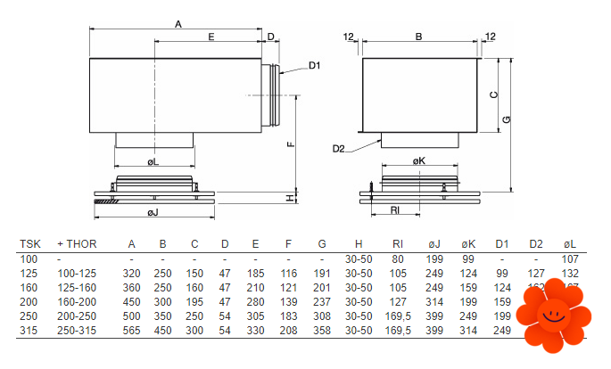 TST wird direkt an das Rundrohr gesteckt. Wenn das Ventil in den Anschlusskasten PER gesteckt ist, soll vor dem Kasten ein gerades Rohrstück legt. Das Rohr muss viermal länger sein als sein Durchmesser.