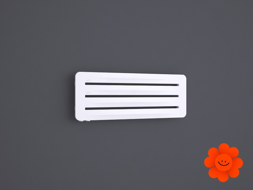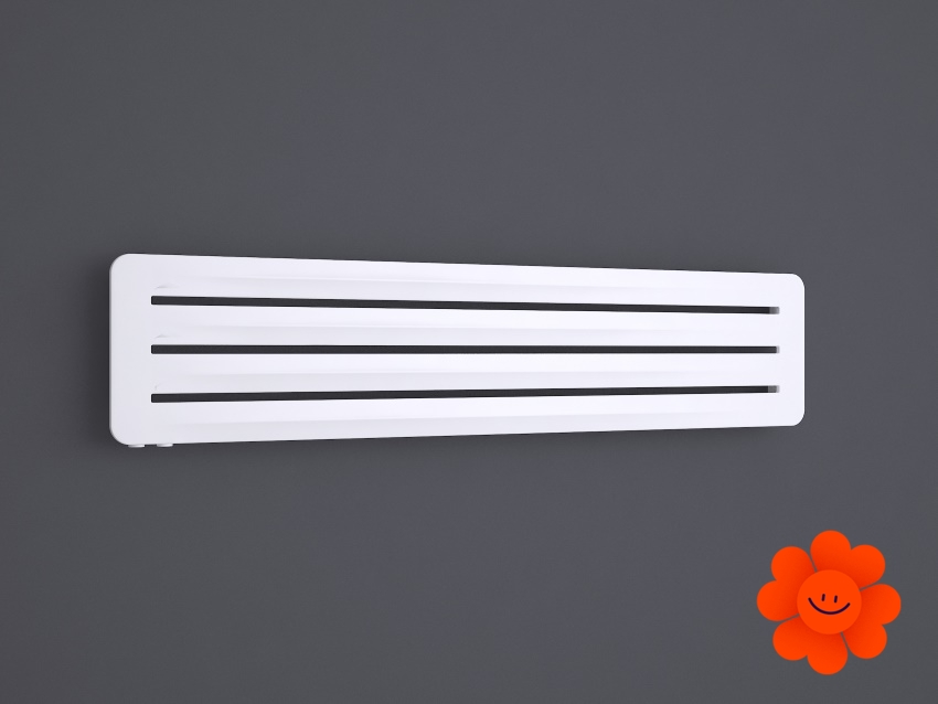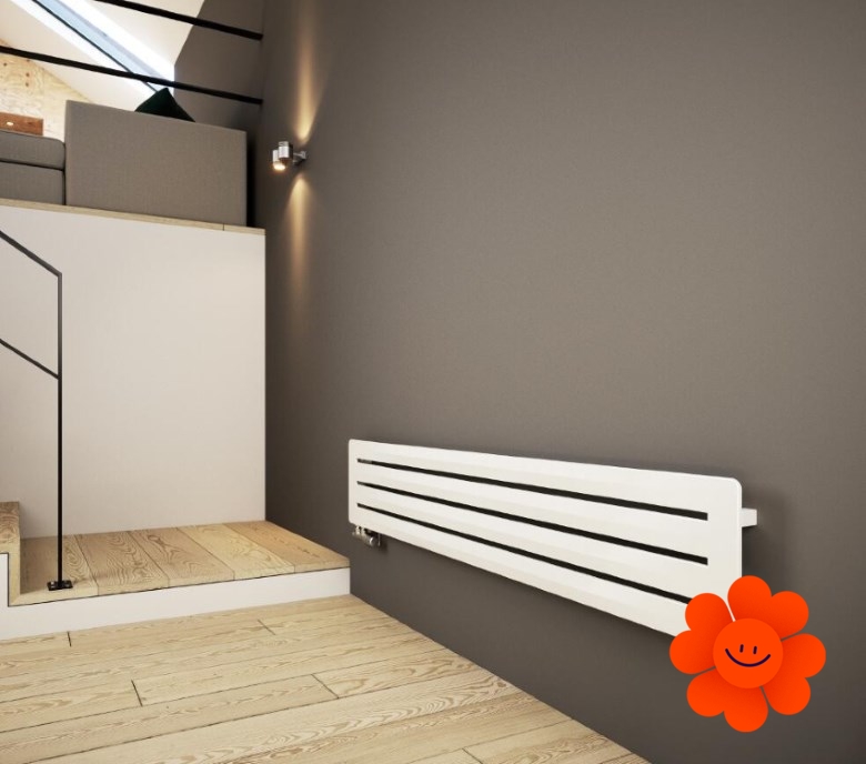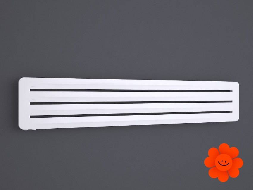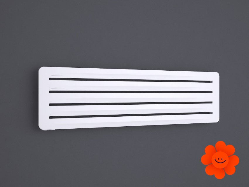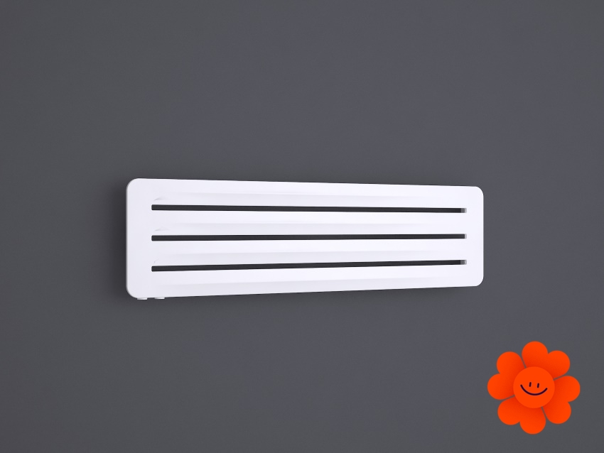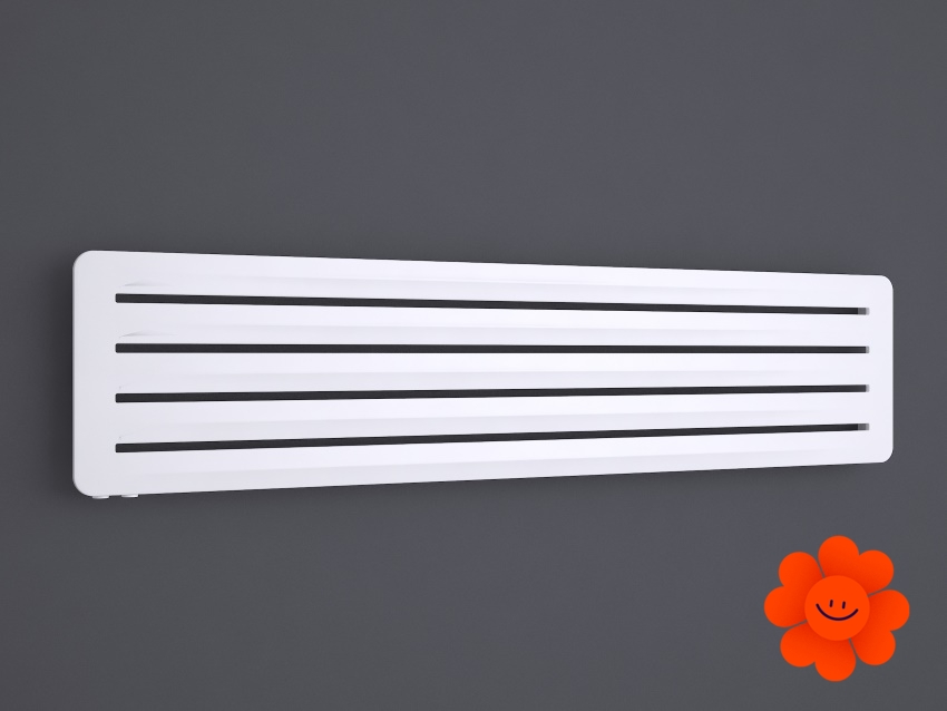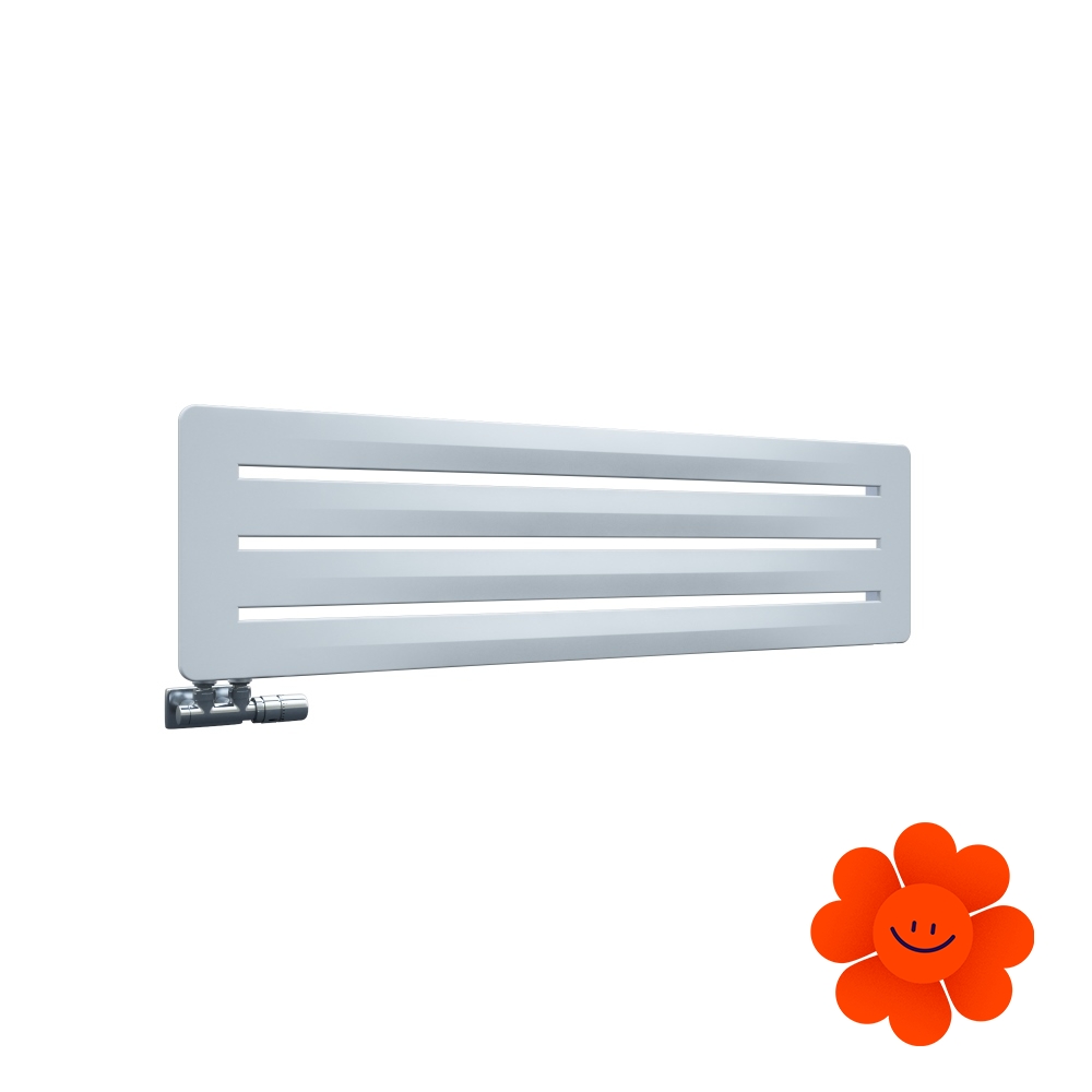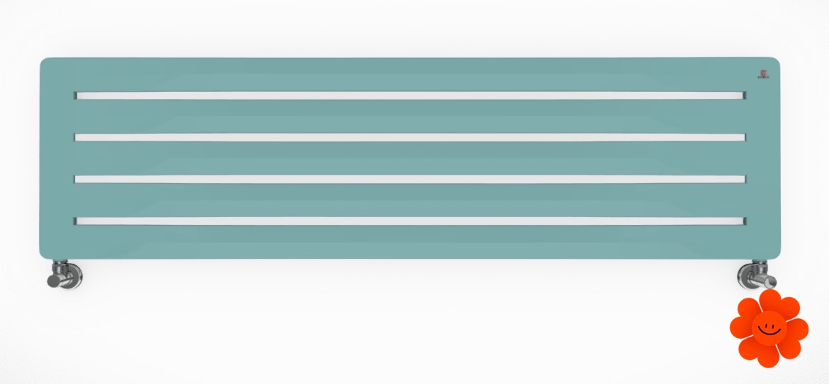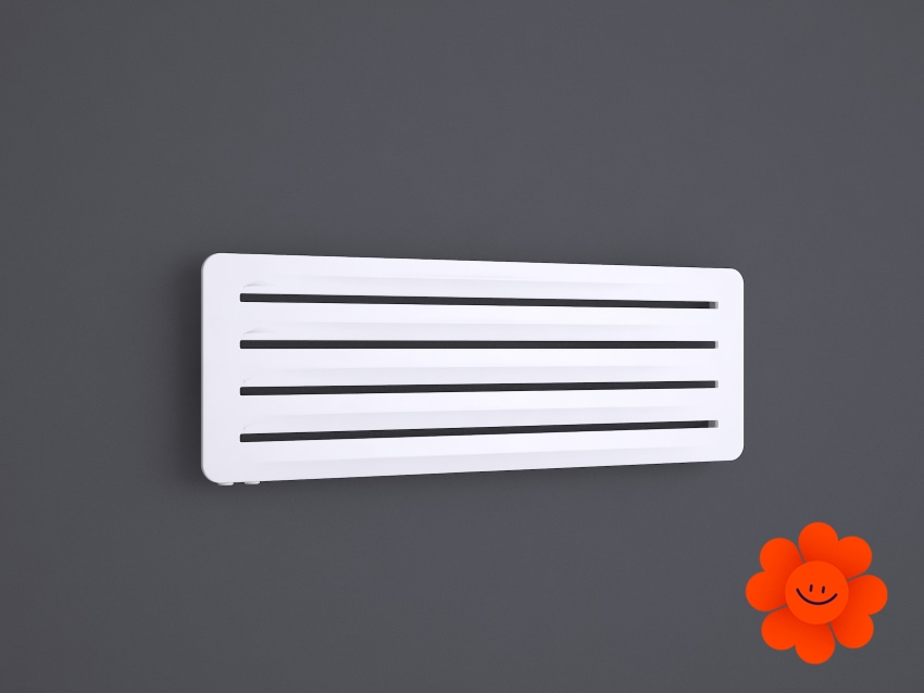 Hier führen wir einen horizontalen Heizkörper Aero H an, der mit dem Warmwasser-Betrieb erhältlich ist. Wärmeleistung: 290-720 W.