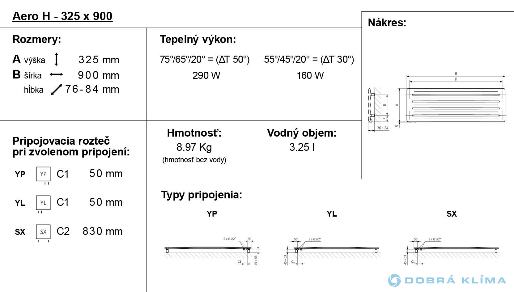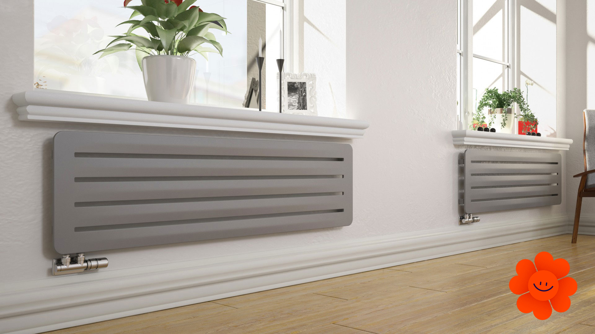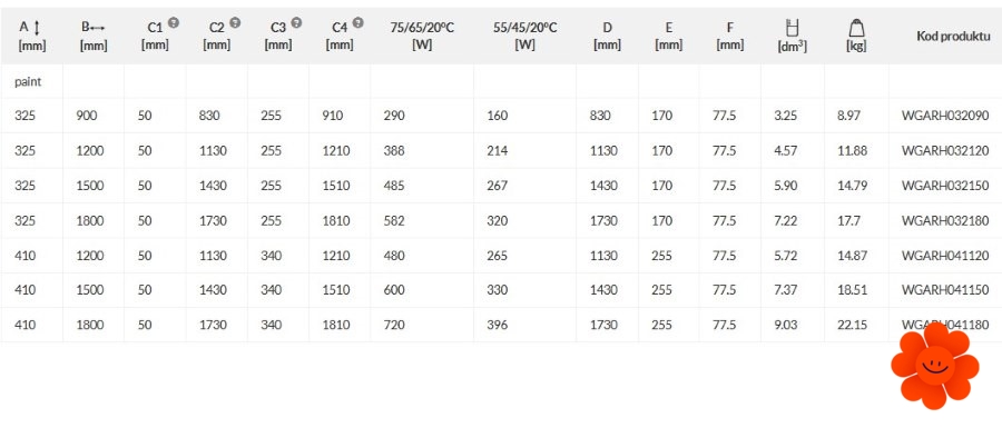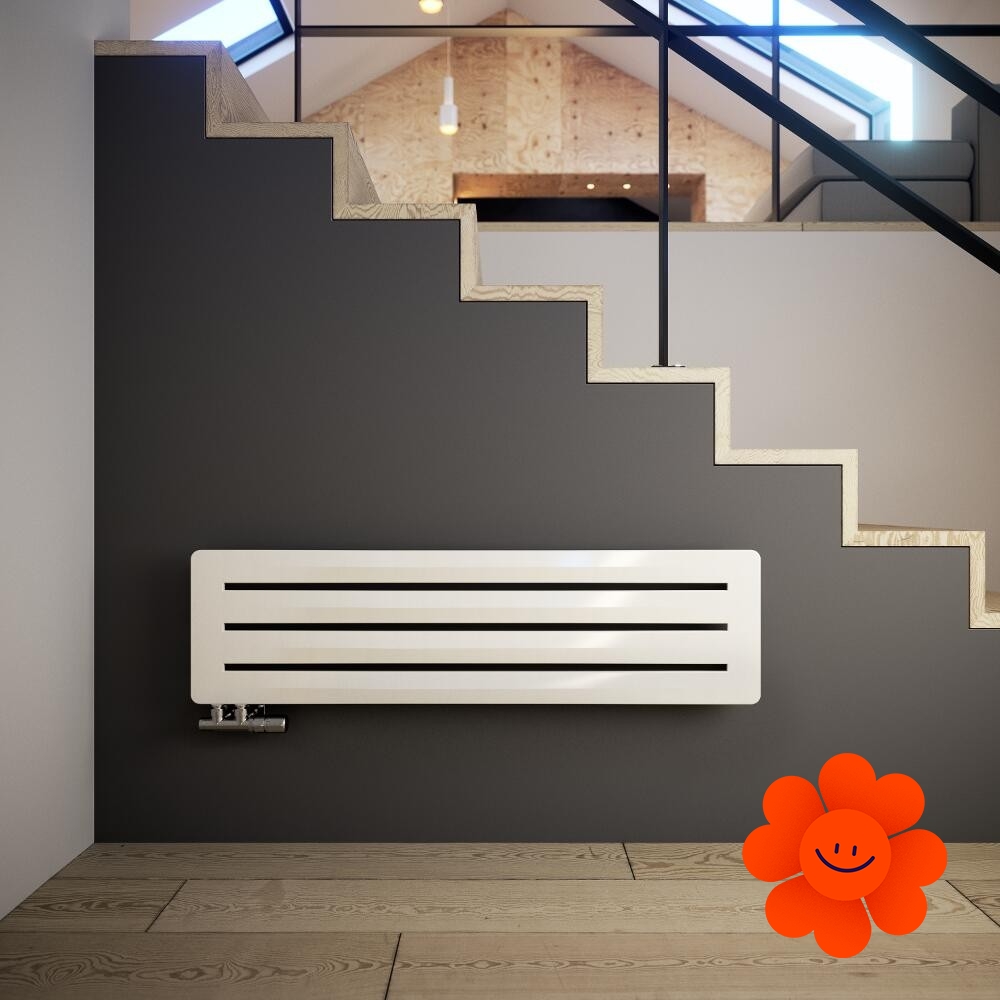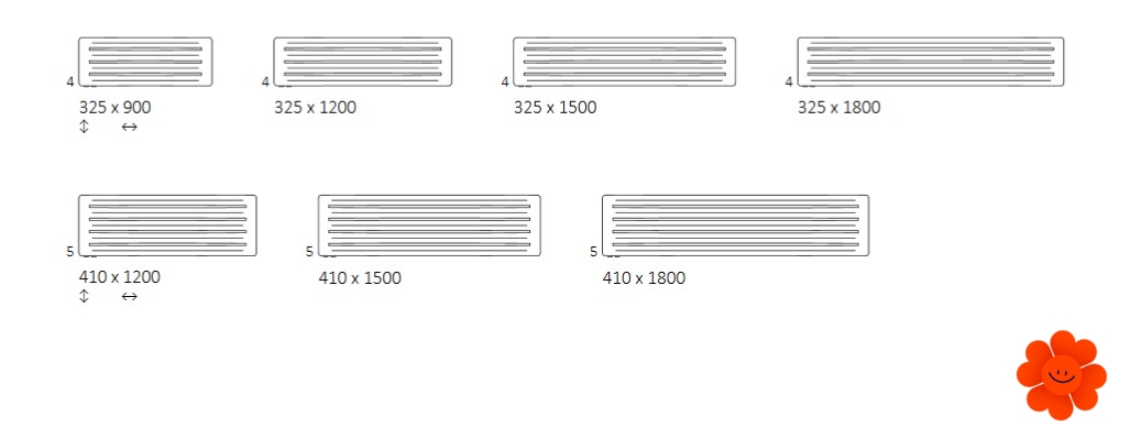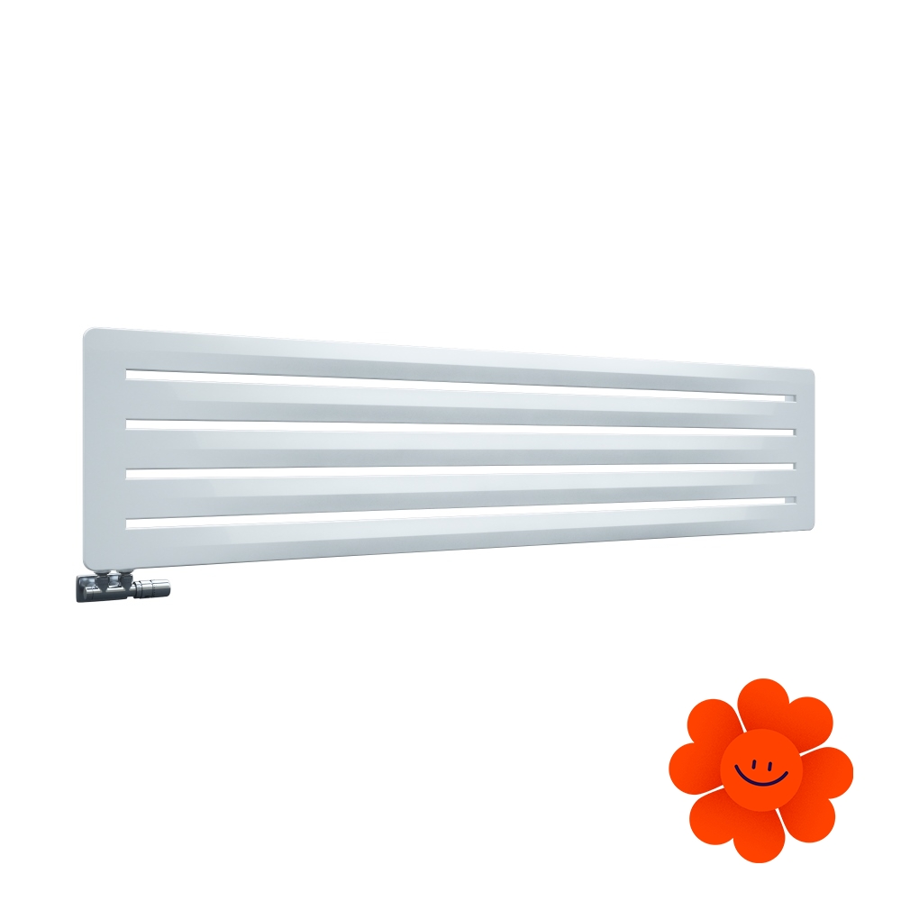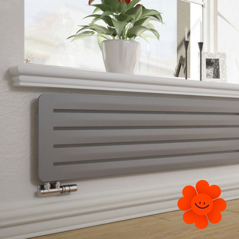 Hier führen wir einen horizontalen Heizkörper Aero H an, der mit dem Warmwasser-Betrieb erhältlich ist. Wärmeleistung: 290-720 W.