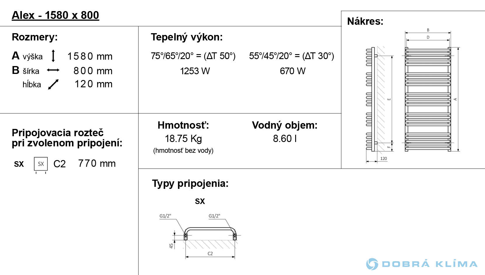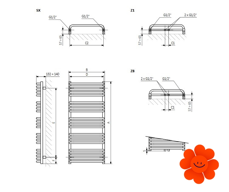 Dieses Modell ist in der Ausführung mit dem Warmwasser-Betrieb verfügbar. In unserem Angebot finden Sie auch der Elektroheizkörper Alex und der Heizkörper Alex ONE mit einer eingebauten Heizpatrone. Wärmeleistung: 180-1253 W.