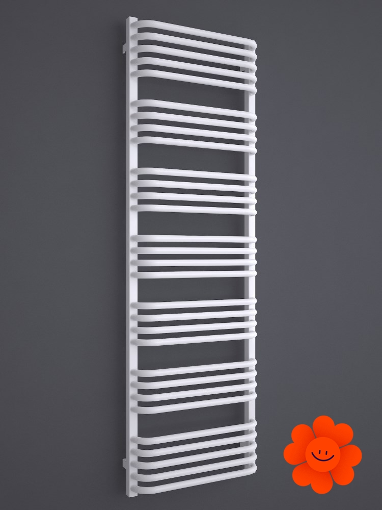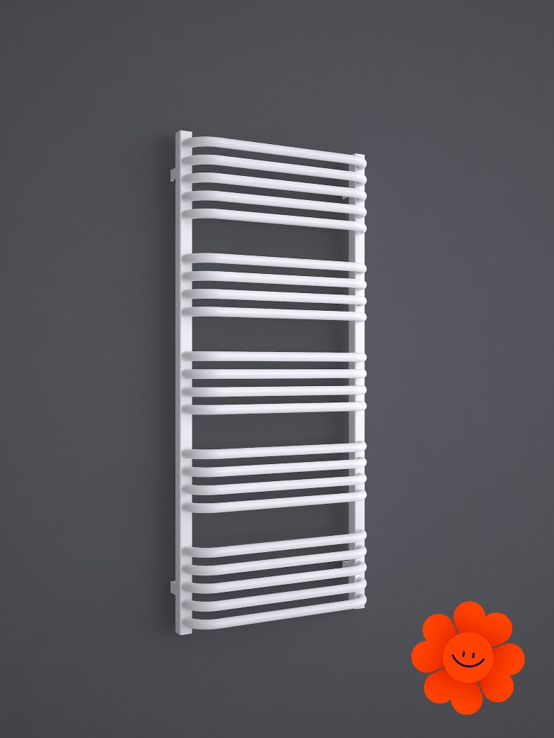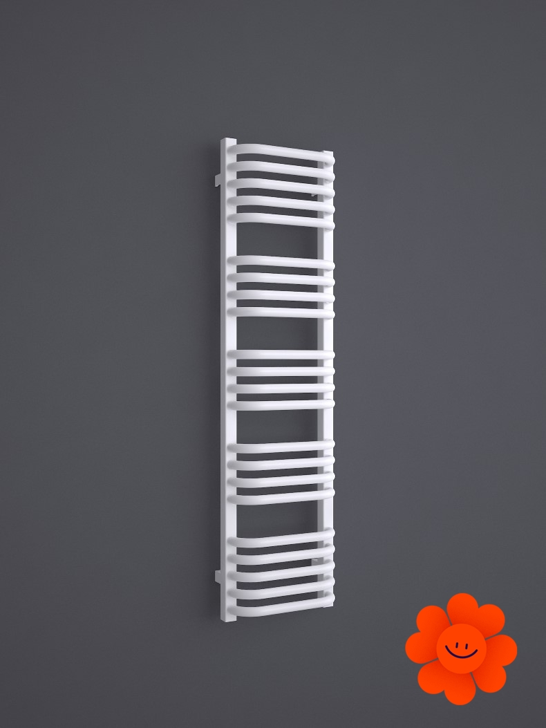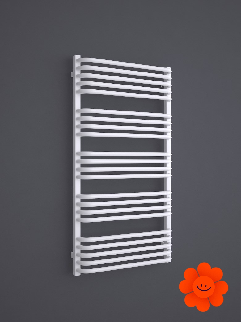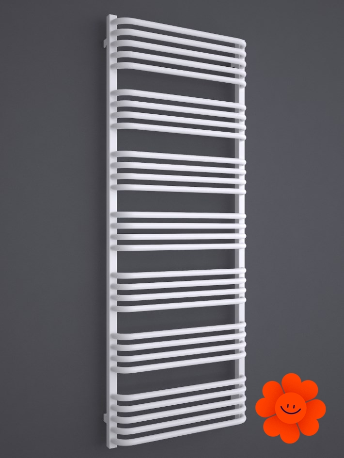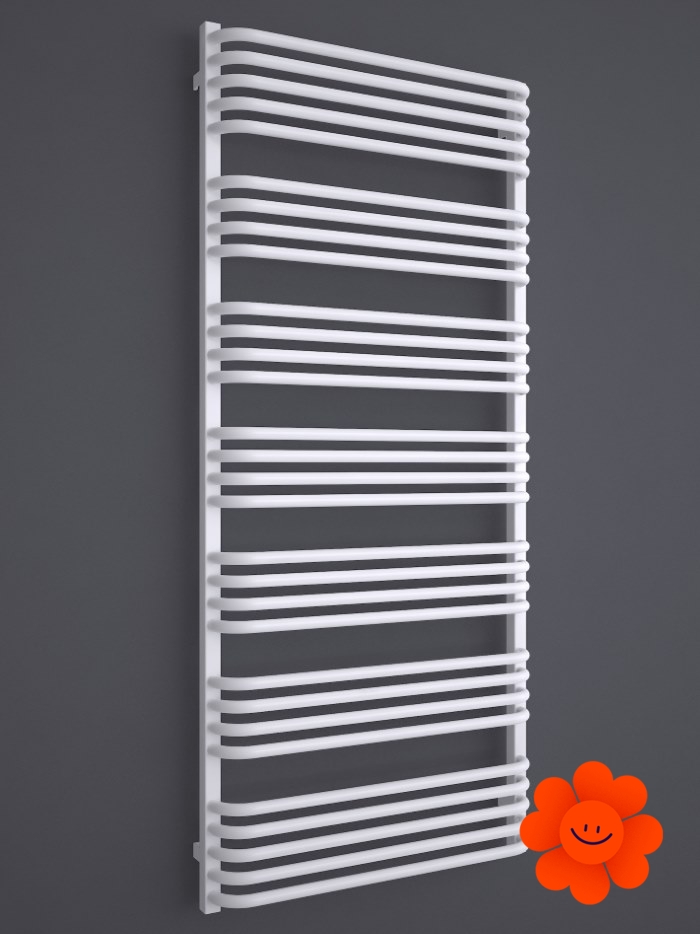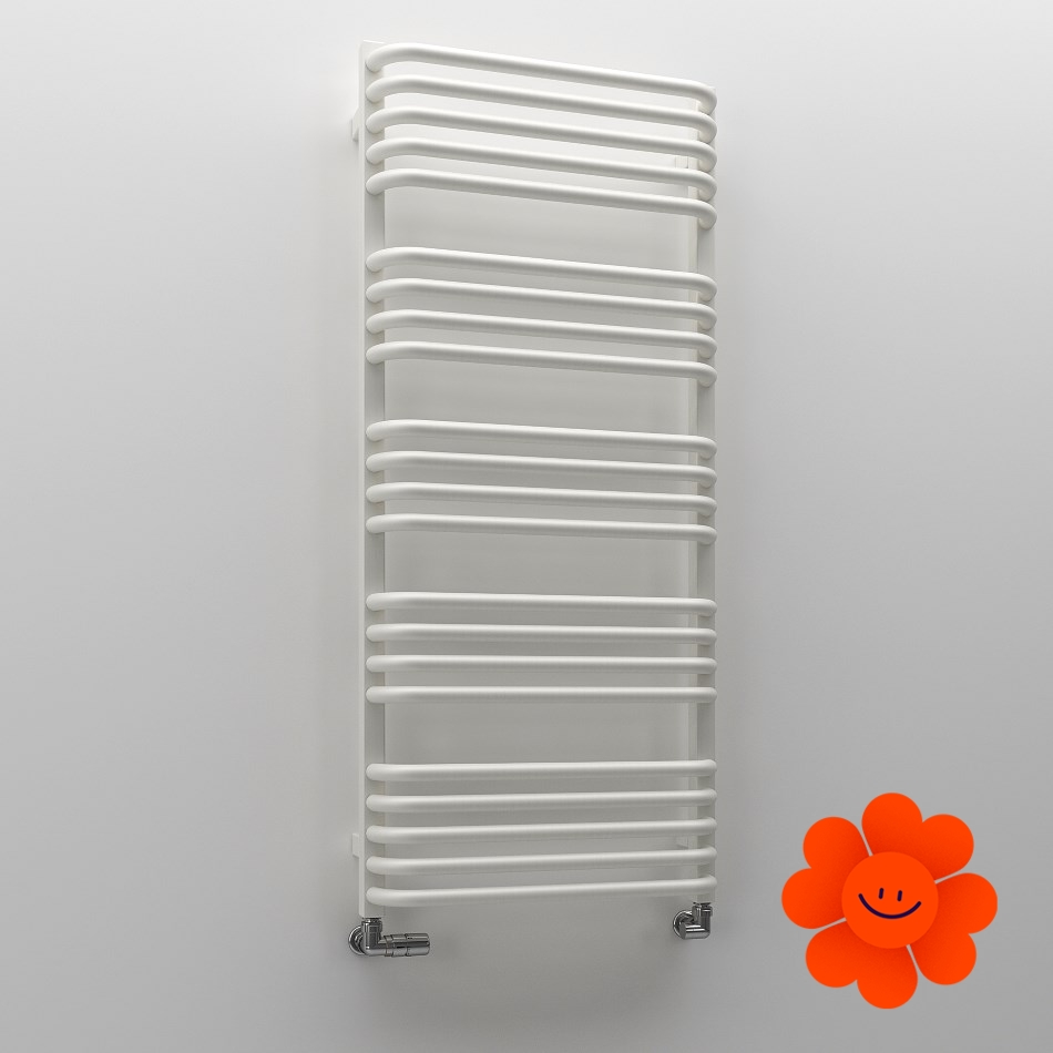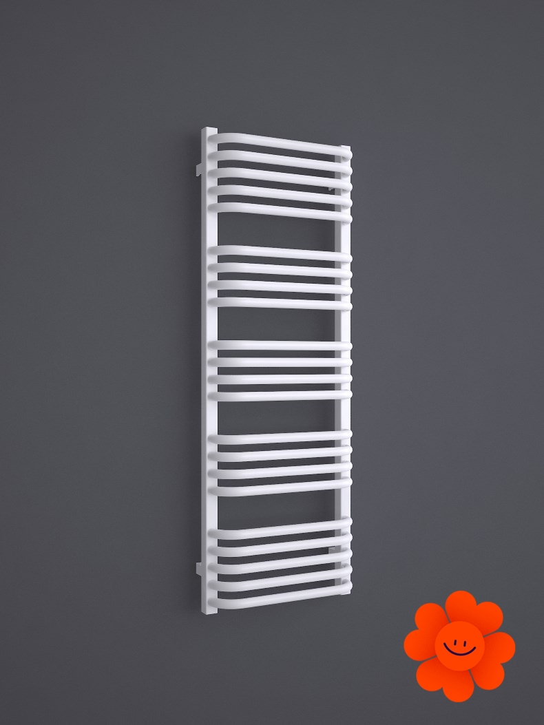 Die gebogenen Rohre des Heizkörpers und Abstände zwischen den Rohren ermöglichen ein einfaches Aufhängen von Textilien. Alex ist in einer breiten Farbpalette erhältlich .