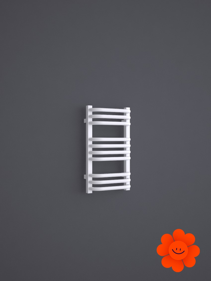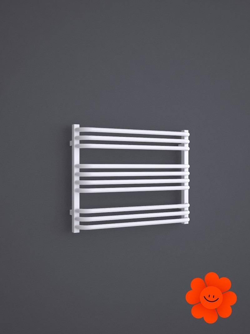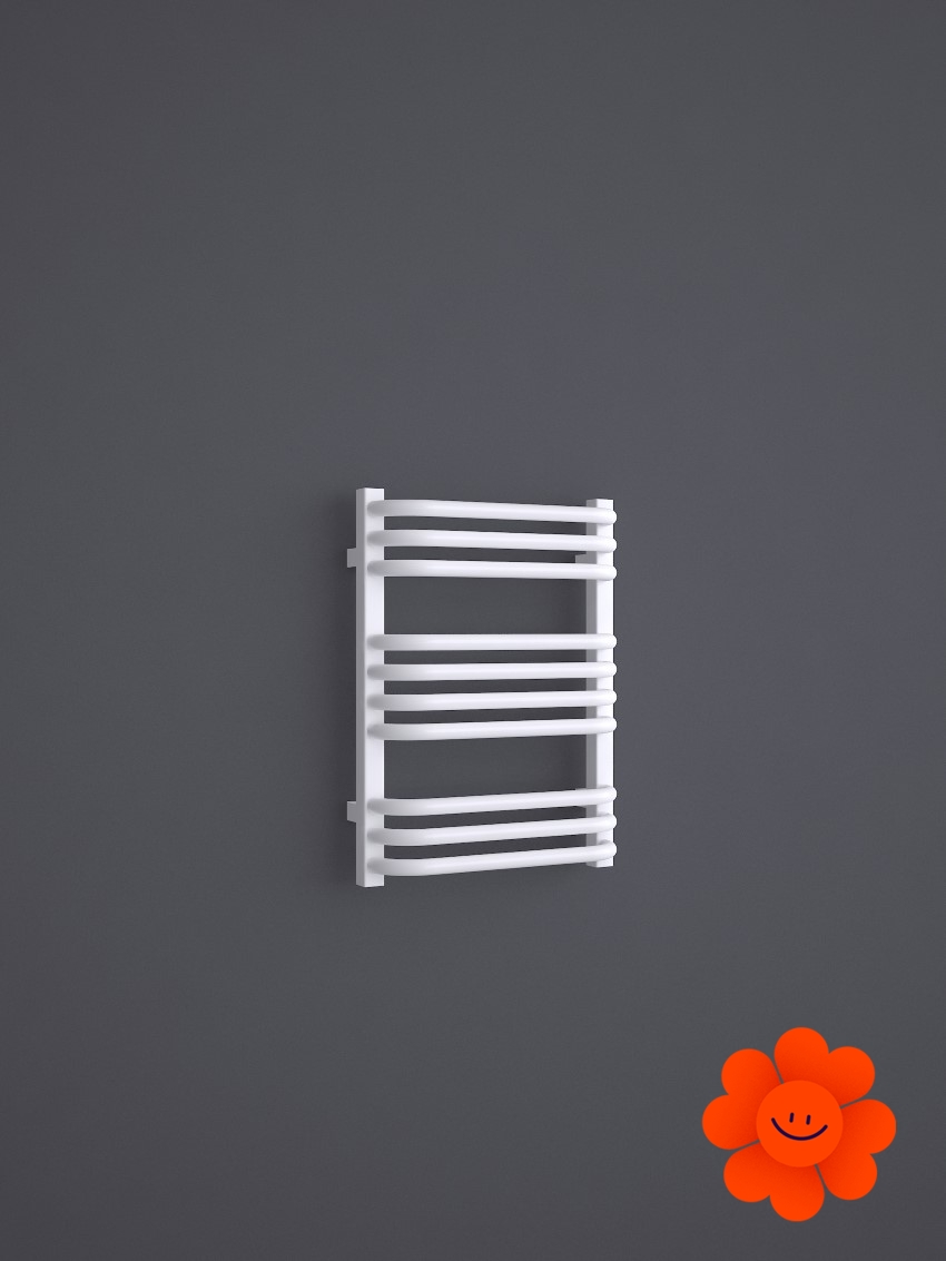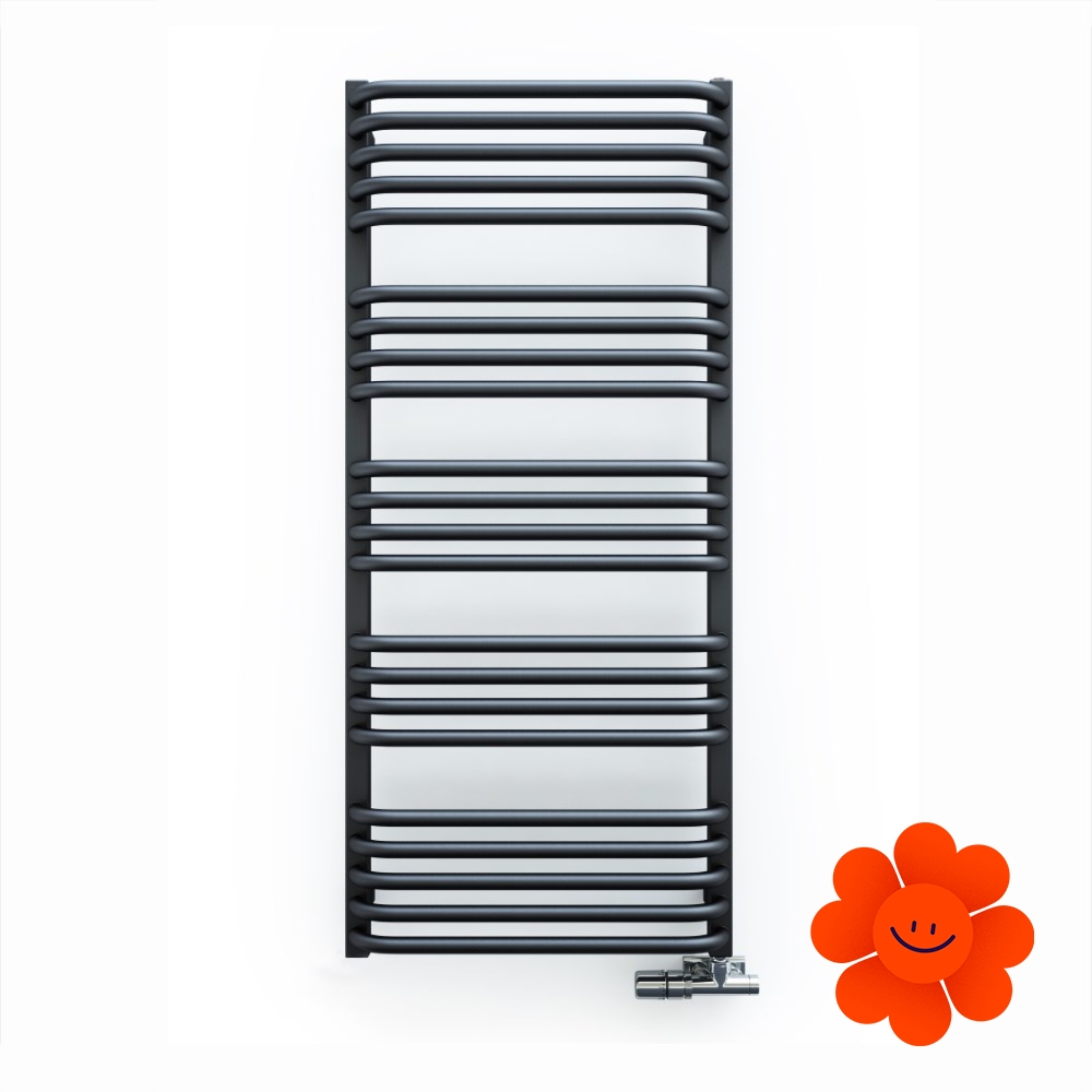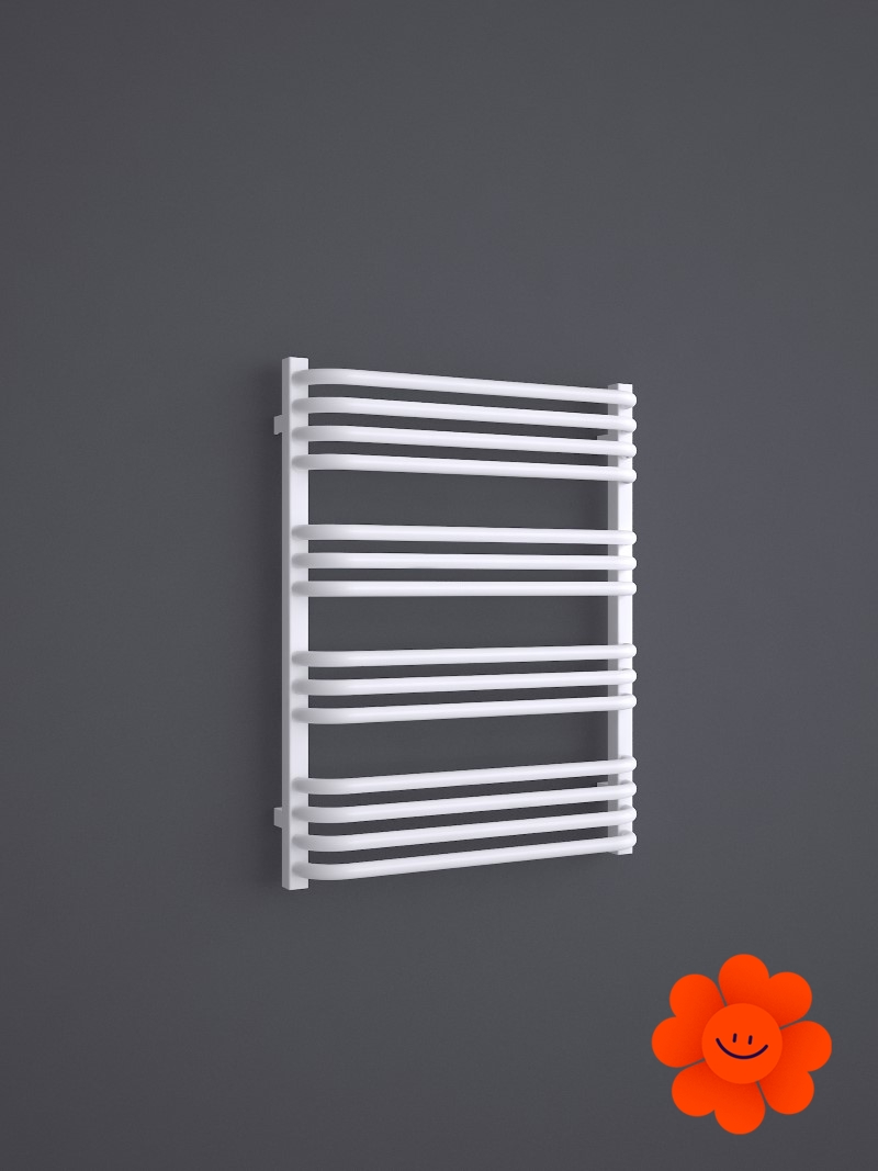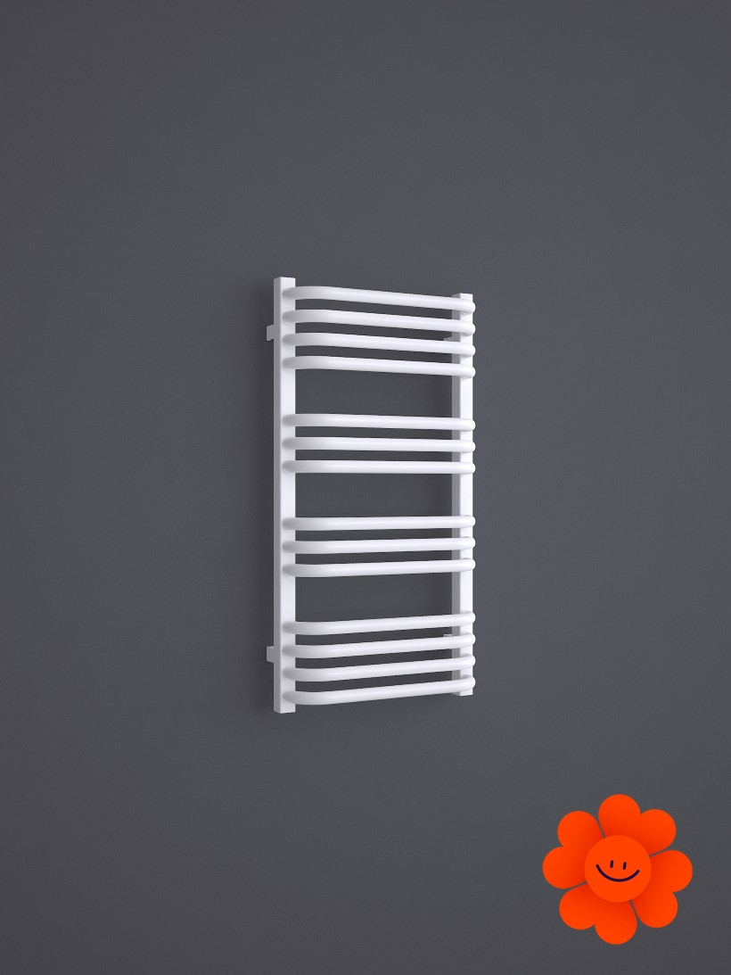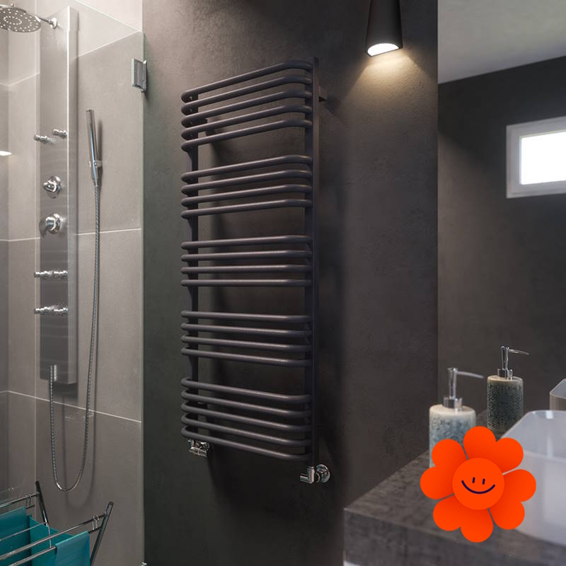 Die gebogenen Rohre des Heizkörpers und Abstände zwischen den Rohren ermöglichen ein einfaches Aufhängen von Textilien. Alex ist in einer breiten Farbpalette erhältlich .