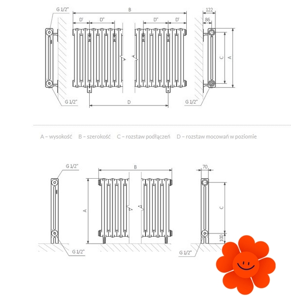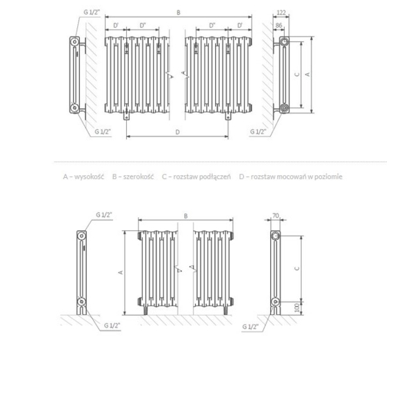 Der Heizkörper Bart ist eine ausgezeichnete Alternative zu den Gussheizkörpern vom alten Typ, typisch für große Apartments in den sozialistischen Zeiten. Die Analogausmaßen und gleiche Abstände der Anschlüsse ermöglichen einen einfachen Austausch ohne Änderungen in der Installation. Der Heizkörper Bart ist nur 70 mm tief, deshalb ist er auch für die dünnen Fensterbrettern geeignet.