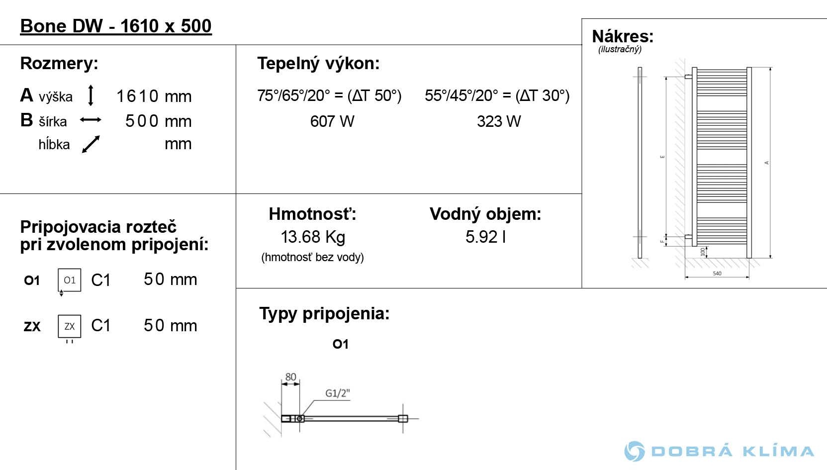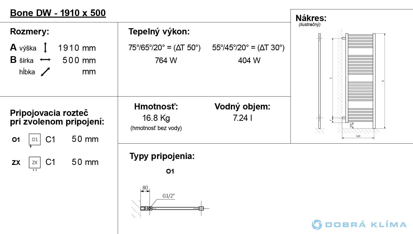 Bone DW ist in der Ausführung mit dem Warmwasser- und elektrischen Betrieb verfügbar. Seine Wärmeleistung ist 607-764 W. In unserem Angebot finden Sie auch den klassischen Badheizkörper an die Wand Bone.