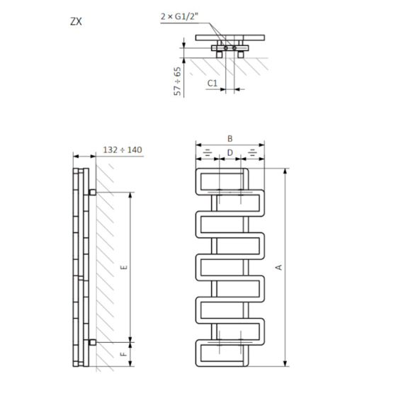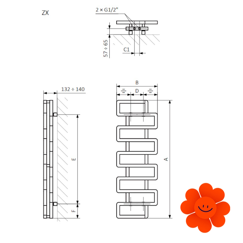 Verfügbare Versionen: Wasserheizung. Heizleistung: 258 - 873 W.