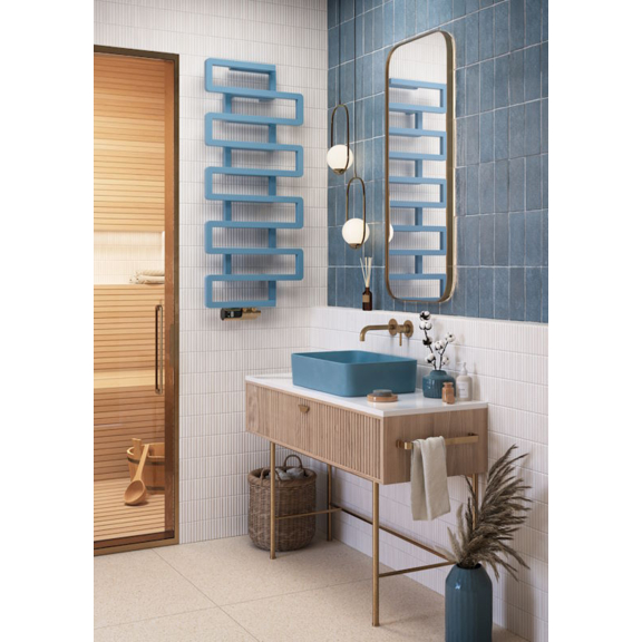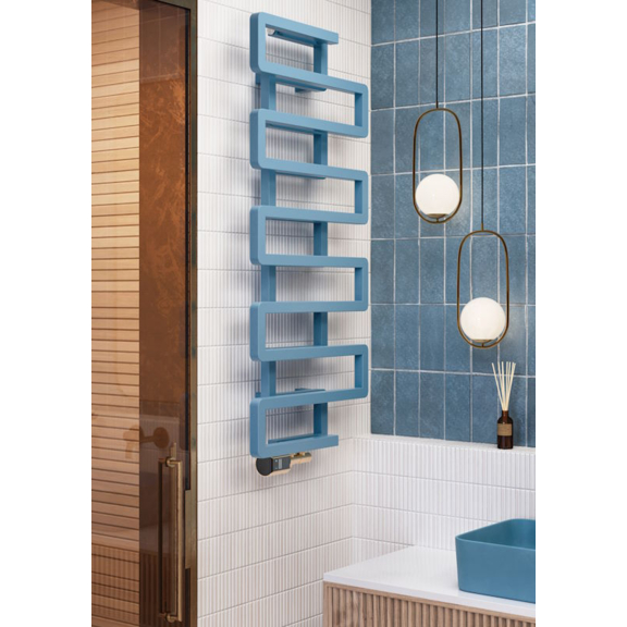 Die genaue Form des Heizkörpers Bookie wurde dank fortschrittlicher Laserschneidtechnologie von Stahlprofilen hergestellt. Das Biegen eines Vierkantrohrs in einem Winkel von 90 Grad ermöglichte es, einen modernen Körper zu erhalten, der in Badezimmern mit dem minimalistischen und skandinavischen Stil funktionieren wird. Die durchdachte Gestaltung der Verbindung von Vorder- und Rückwand der Rohre sorgt für ein komfortables Aufhängen von Handtüchern.