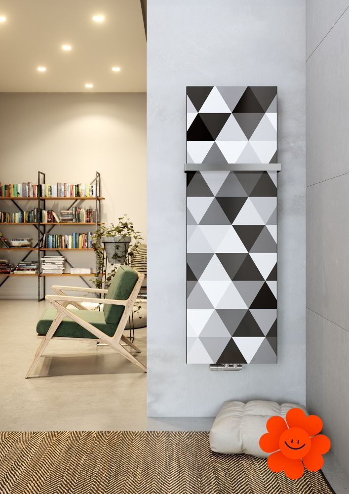 Ein Druckmotiv an der Glasoberfläche macht Ihren Heizkörper zu einem wirklich originellen Designstück. Sie können aus dem Angebot von vorgewählten Mustern wählen oder es ist möglich, eine eigene originelle Grafik anzuwenden. In unserem Angebot finden Sie mehr als 250 Farbvarianten für die Seiten des Heizkörpers.