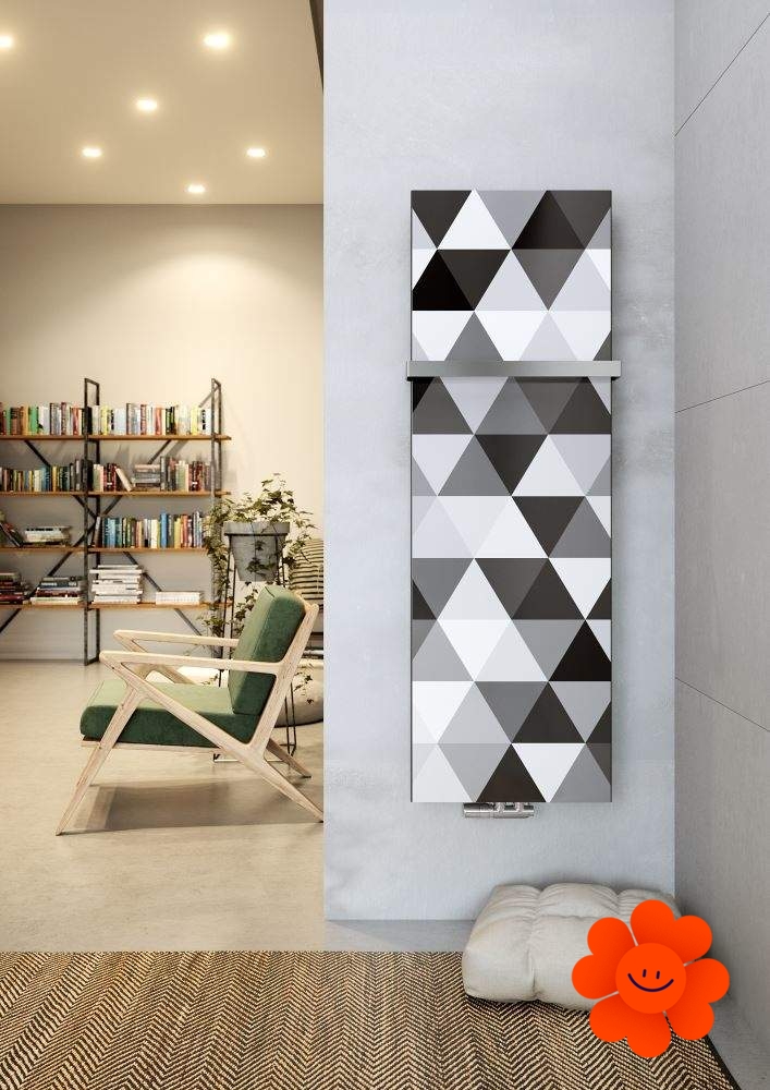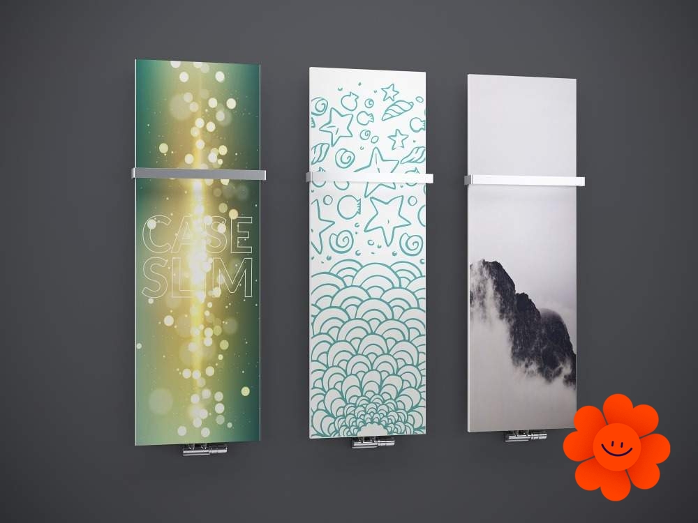 Das Druckmotiv an der Glasoberfläche macht Ihren Heizkörper zu einem wirklich originellen Designstück. Sie können aus dem Angebot von vorgewählten Mustern wählen oder es ist möglich, Ihre eigene originelle Grafik anzuwenden. In unserem Angebot finden Sie mehr als 250 Farboptionen für die Seiten des Heizkörpers.
