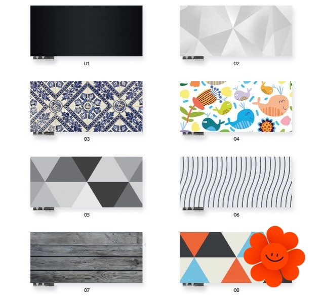 In unserem Angebot finden Sie mehr als 250 Farbvarianten und speziellen Oberflächenbearbeitungen, einschließlich des modischen Betons oder Spiegels. Die volle Farbpalette ist auch für die Variante mit der Glasfront geeigenet. Wenn Sie ein echt originelles Stück wollen, nutzen Sie die Wahlmöglichkeit eines Druckmotivs an die Glasoberfläche aus und wählen Sie den Heizkörper TERMA Case Slim mit einem Druckmotiv. Sie können aus dem Angebot von vorgewählten Mustern wählen oder auch Ihre eigene originelle Grafik anwenden.