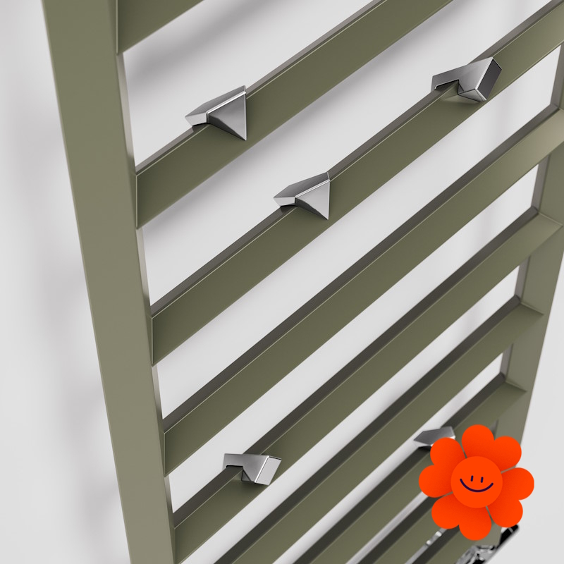 Einzigartiger moderner Badheizkörper mit Rohren mit Diamantquerschnitt. Die einzigartige Form mit sichtbaren Kanten reflektiert das Licht gut, wodurch der Körper optisch leicht bleibt. Das Model ist auch in lackierter oder Chromversion erhältlich.