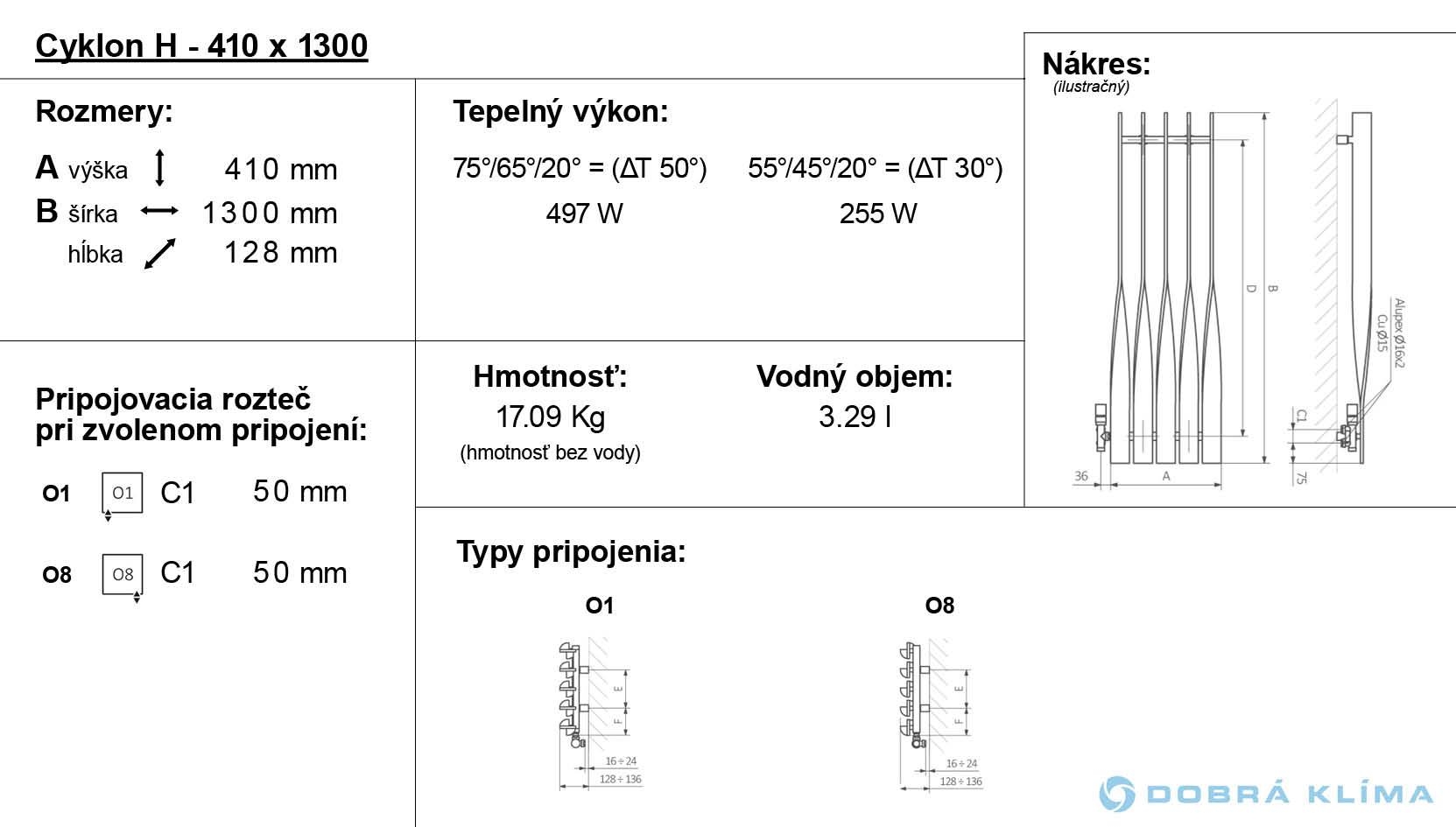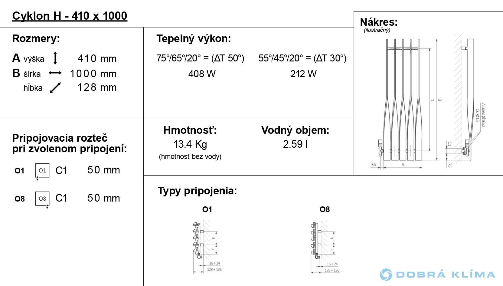 Er ist in vertikalen und horizontalen Varianten erhältlich. Seine einzigartigen gebogenen Heizprofile ermöglichen der horizontalen Variante Cyklon H ungehindertes Trocknen von Textilien. Lieferbar auch mit dem Warmwasser-Betrieb. Wärmeleistung: 490-821 W.