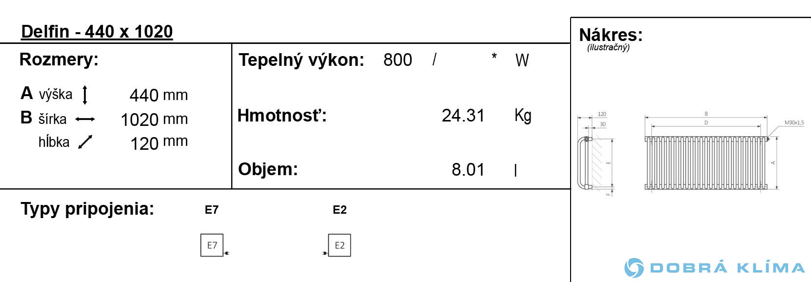 Die elektrische Variante des Heizkörpers Delfin kann unter das Fensterbrett (horizontale Version) installiert werden. Die doppelte Profilreihe sichert seine hohe Leistungsfähigkeit. Sein universelles Design ist eine ausgezeichnete Alternative der üblichen Heizkörper unter ein Fenster, aber auch eine moderne Version der alten Gliederheizkörper.