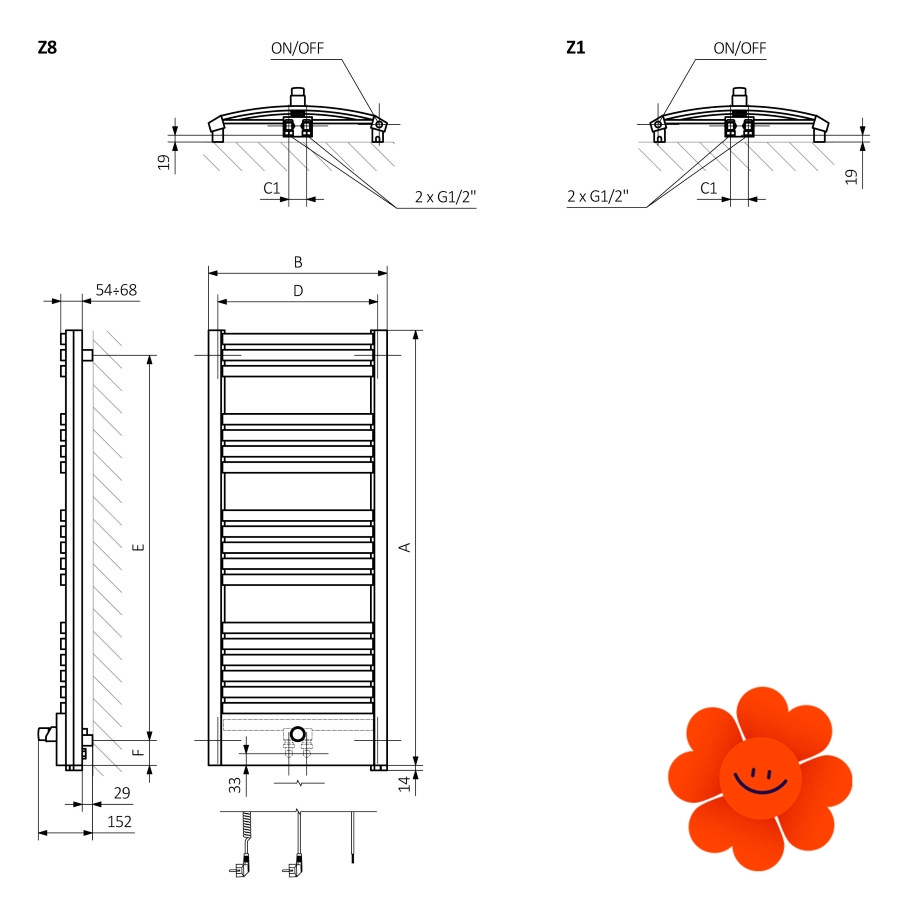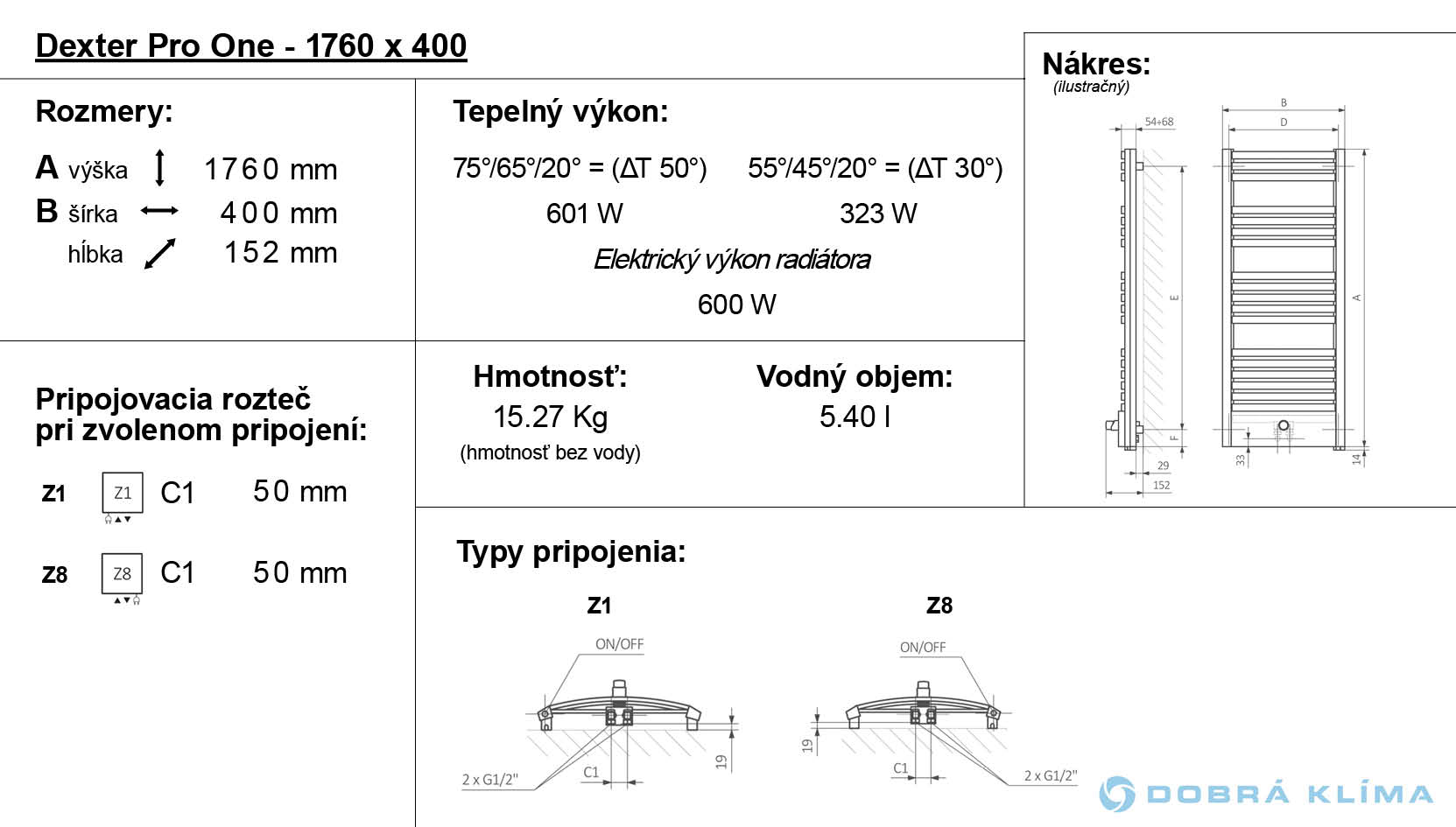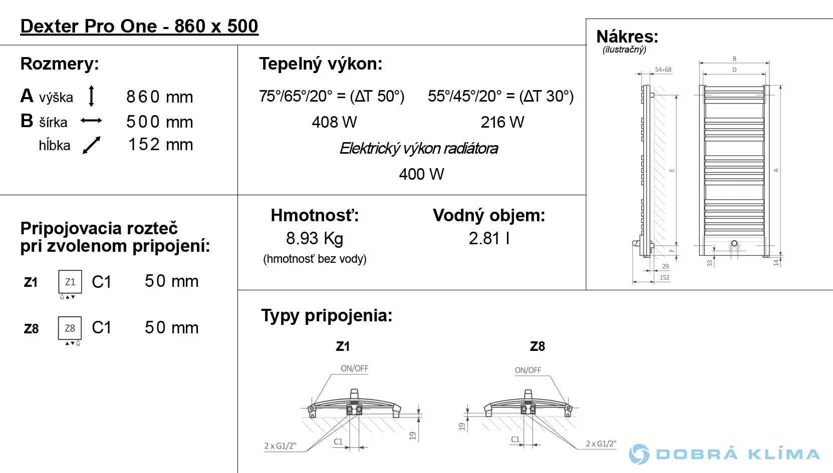 Das im Kollektor versteckte unauffällige Heizelement gehört zum Bestandteil der modernen Ausführung des Heizkörpers - ohne Notwendigkeit von einem externen Elektrogerät, das die elegante Form des Heizkörpers beeinflussen könnte. Zum anderen praktischen und ästhetischen Element des Heizkörpers Dexter Pro One gehört eine Handtuchstange mit der Möglichkeit des Aufhängens von Kleiderhaken ZIP.